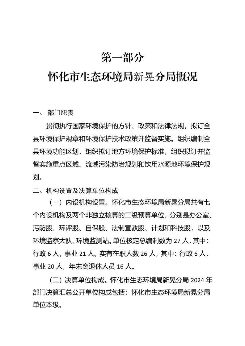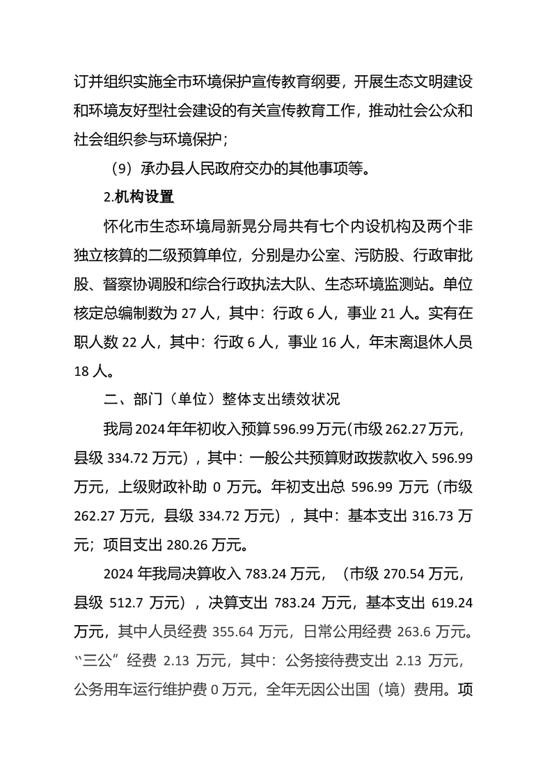 怀化市生态环境局新晃分局2024年度部门决算公开