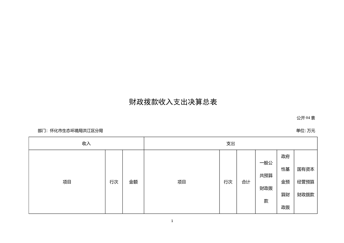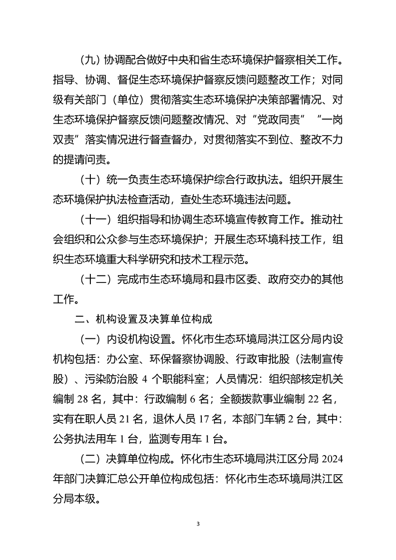 怀化市生态环境局洪江区分局2024年度部门决算公开