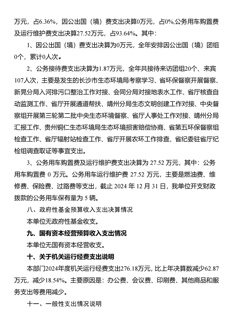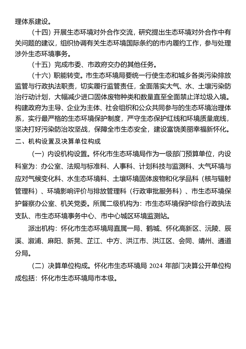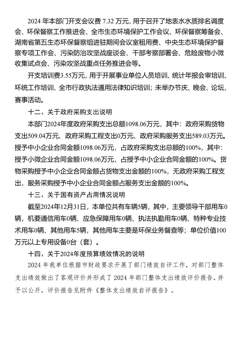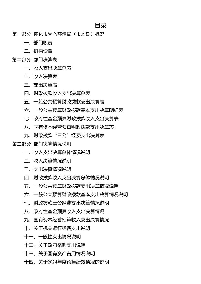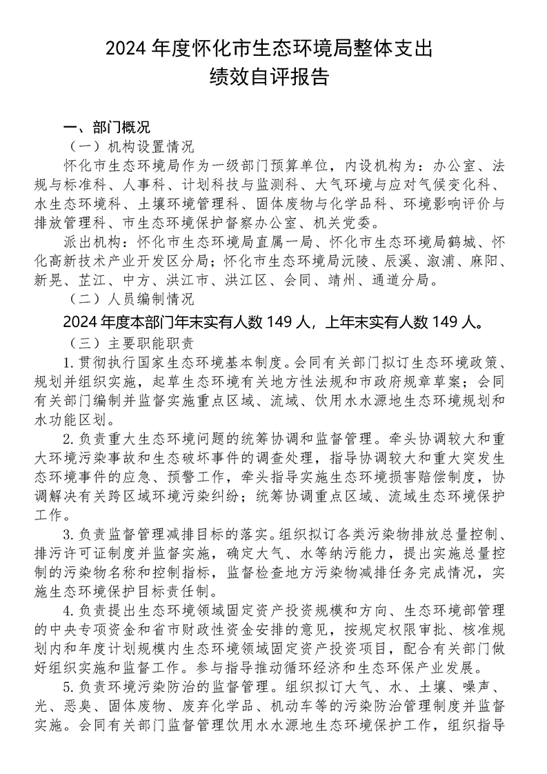 怀化市生态环境局(市本级)2024年度部门决算公开