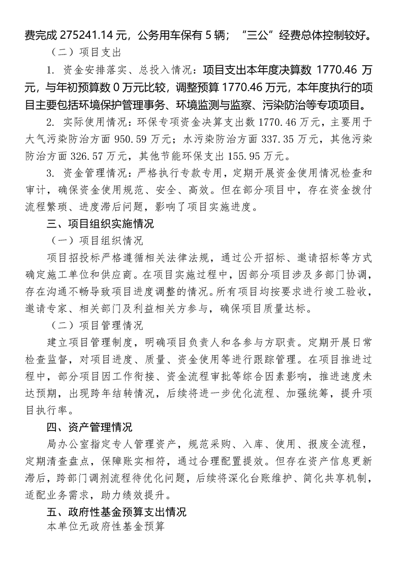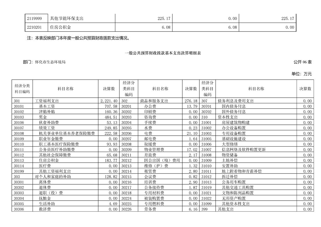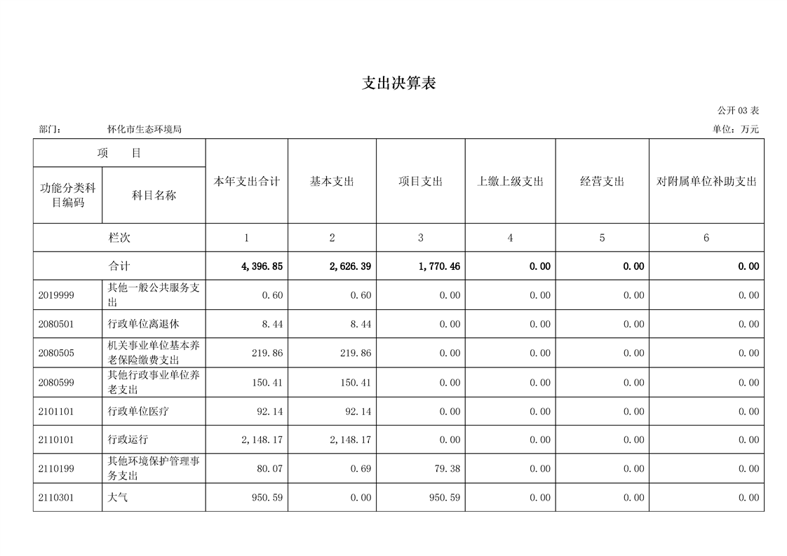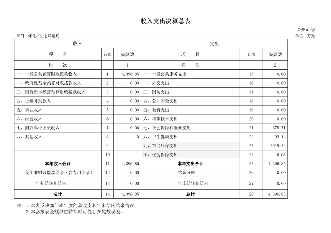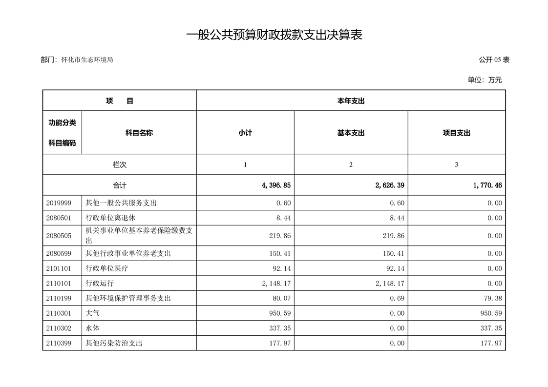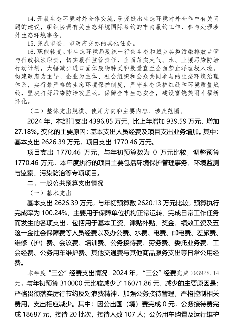 怀化市生态环境局(市本级)2024年度部门决算公开