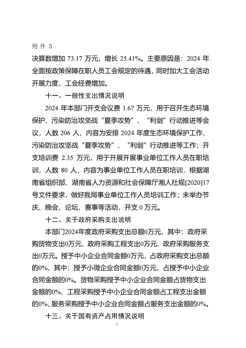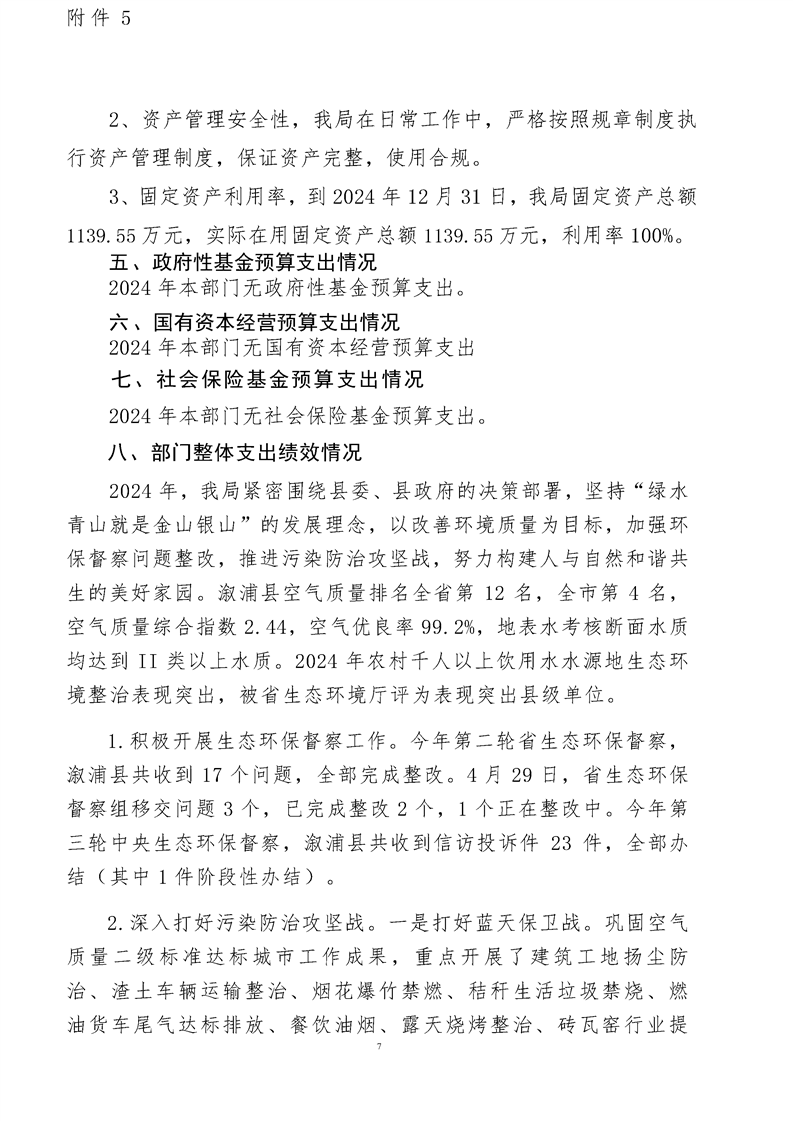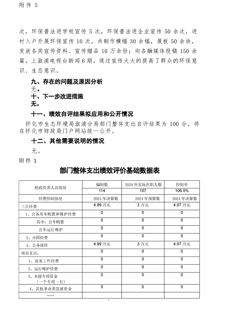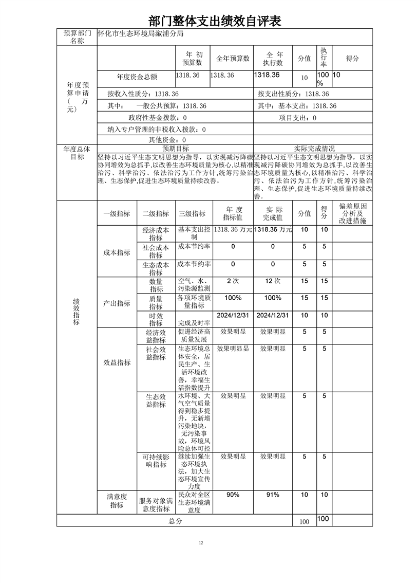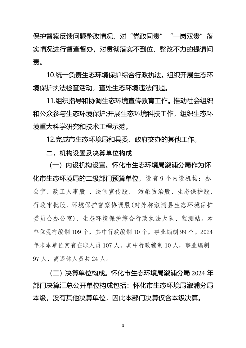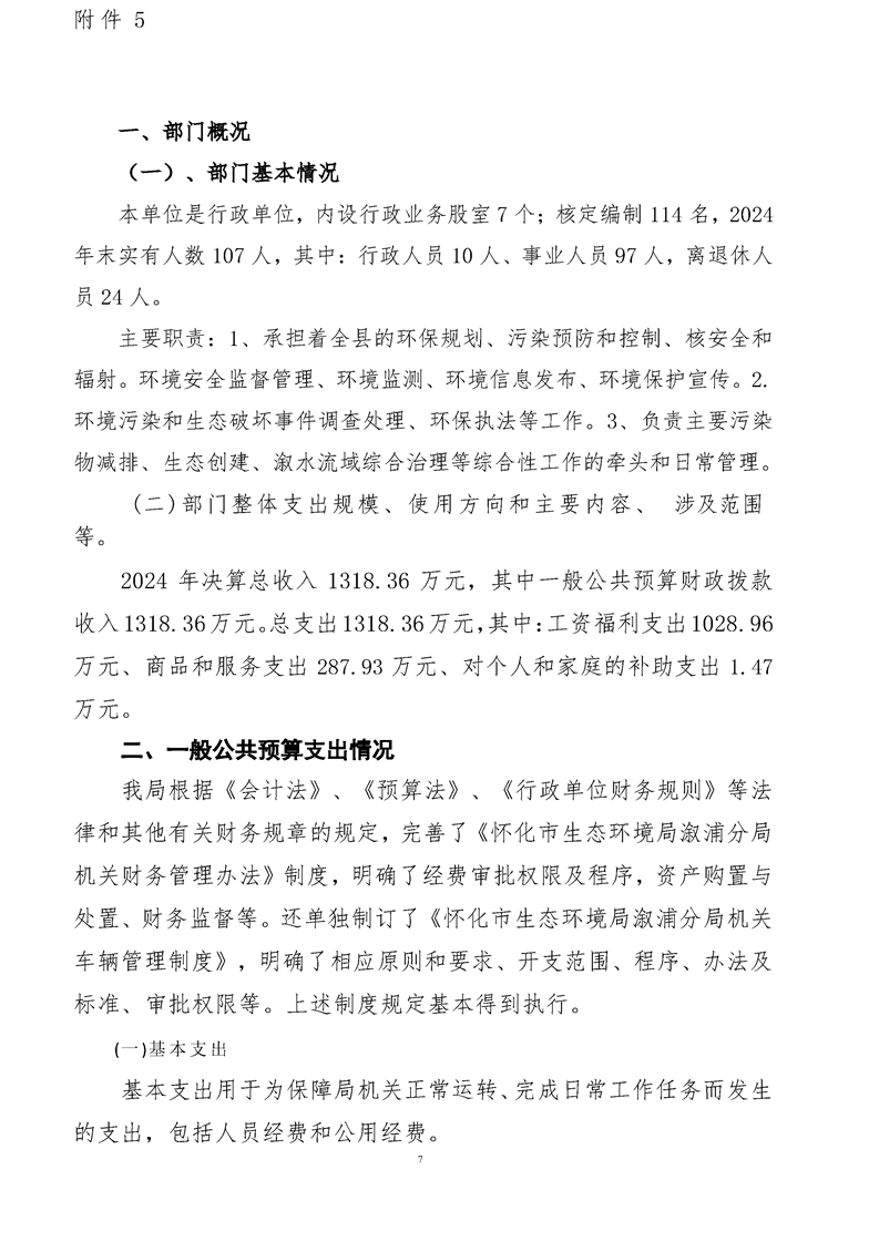 怀化市生态环境局溆浦分局2024年度部门决算公开
