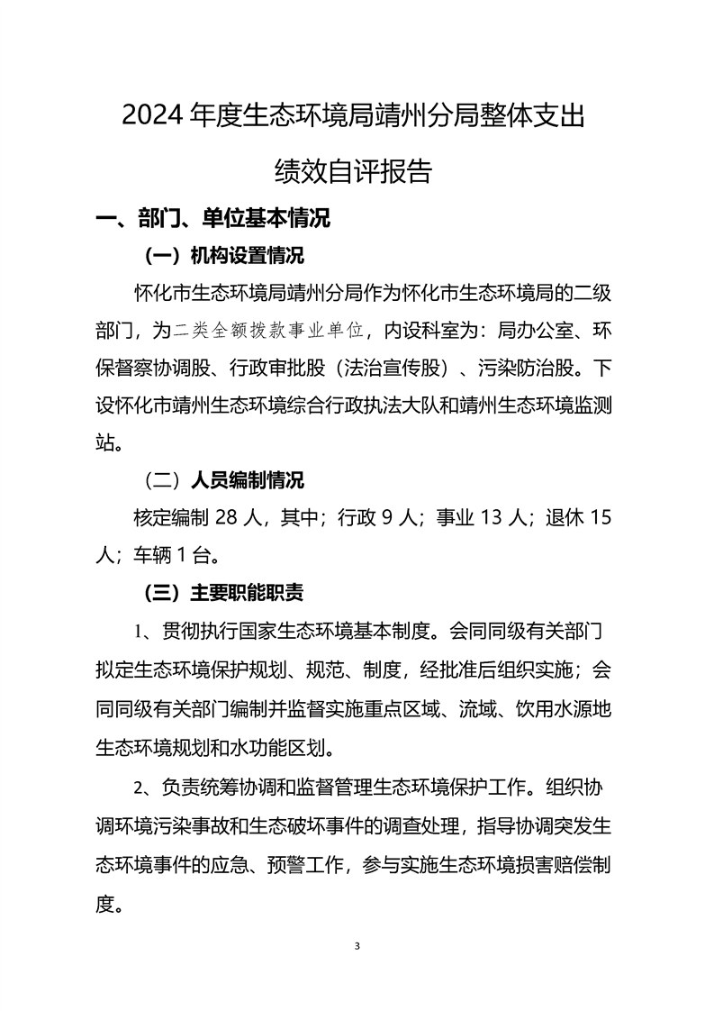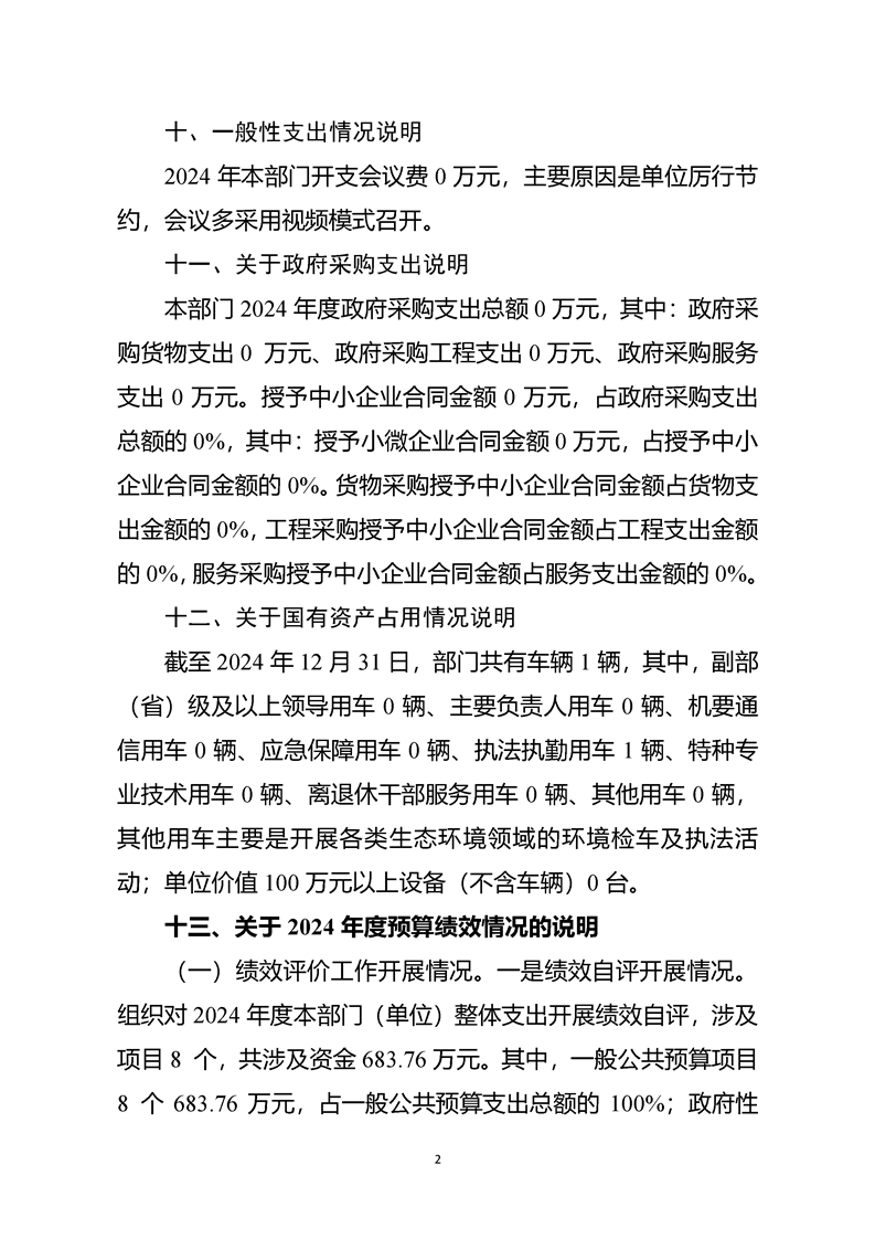 怀化市生态环境局靖州分局2024年度部门决算公开