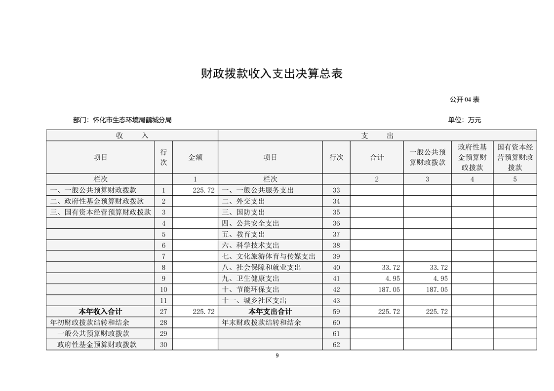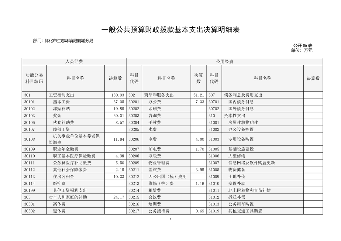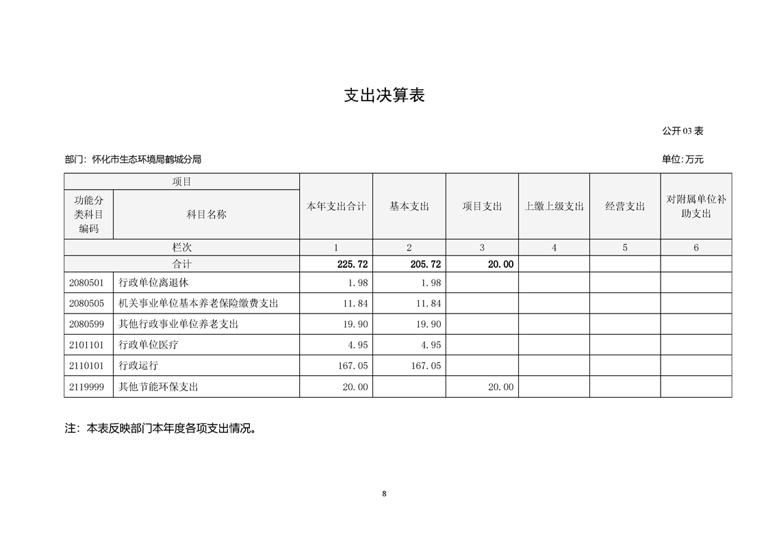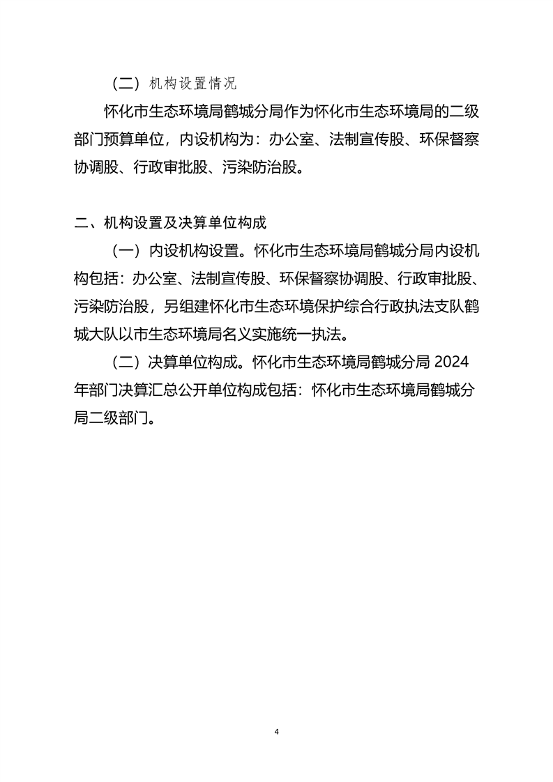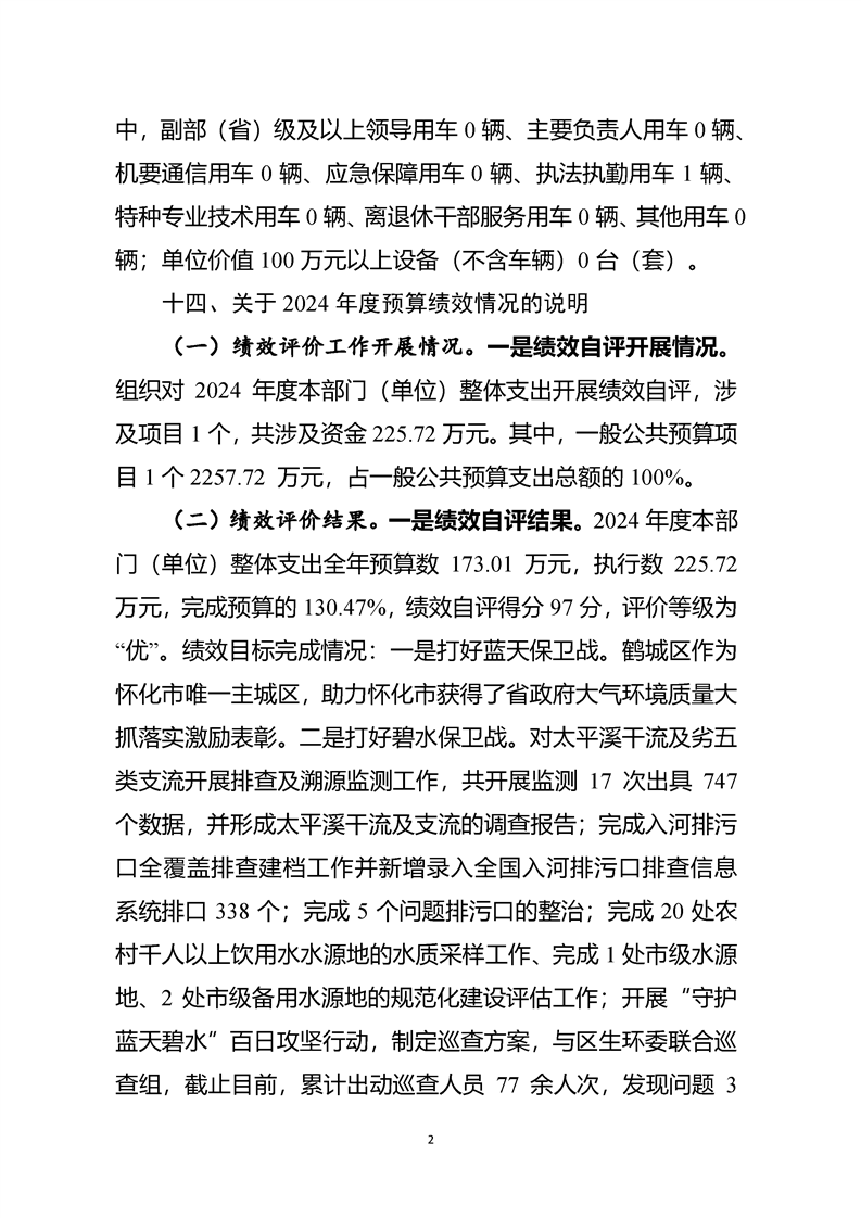怀化市生态环境局鹤城分局2024年度部门决算公开