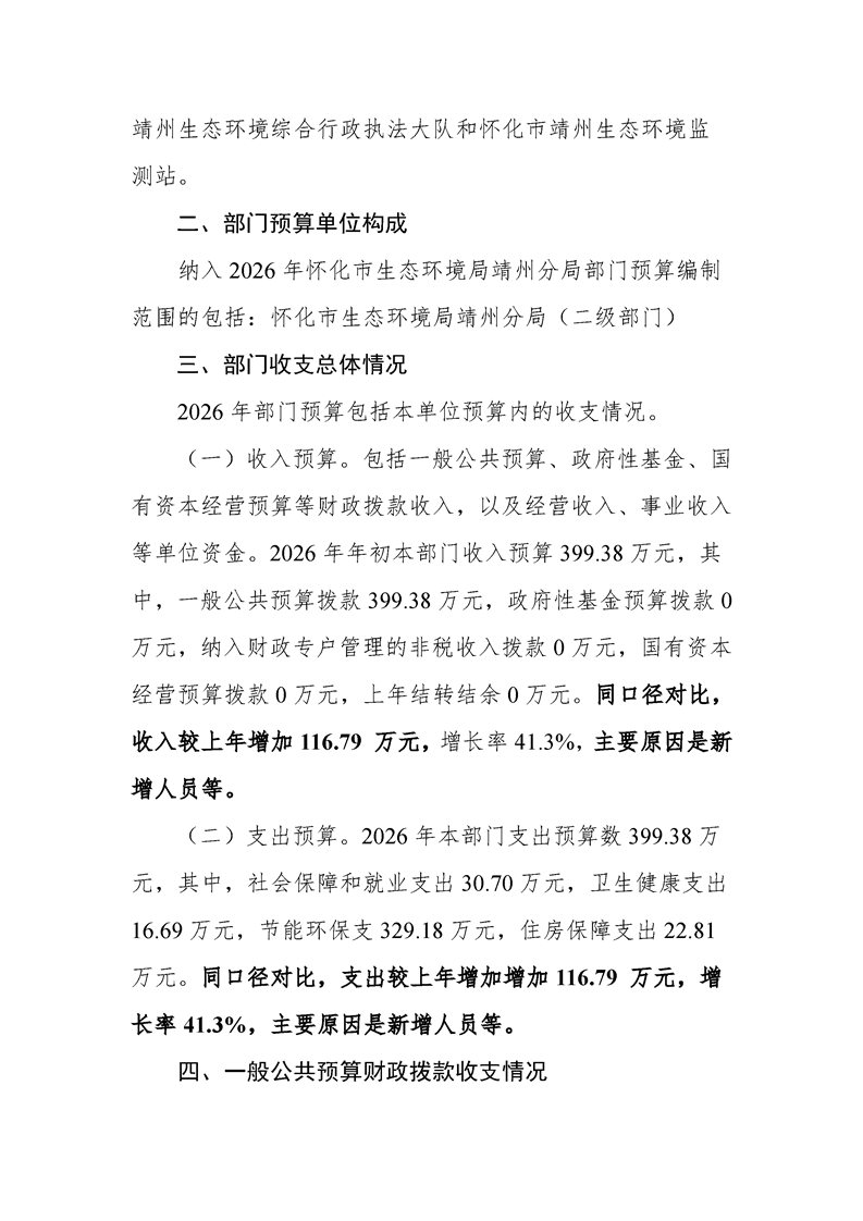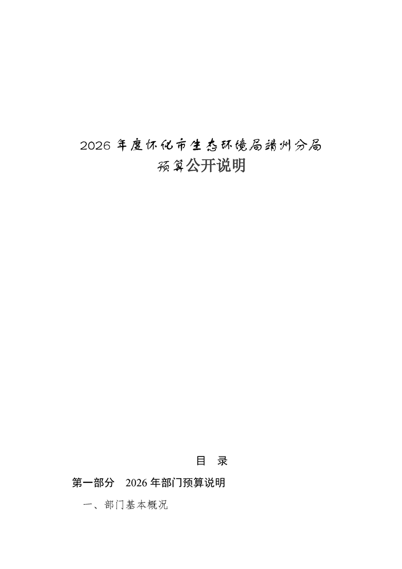 2026年度怀化市生态环境局部门预算公开说明(靖州分局)