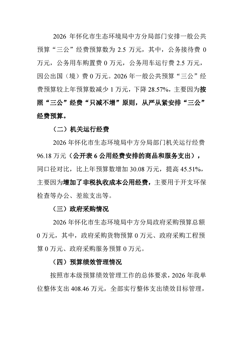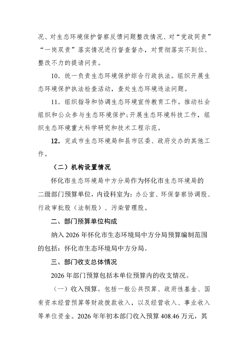 2026年度怀化市生态环境局部门预算公开说明(中方分局)