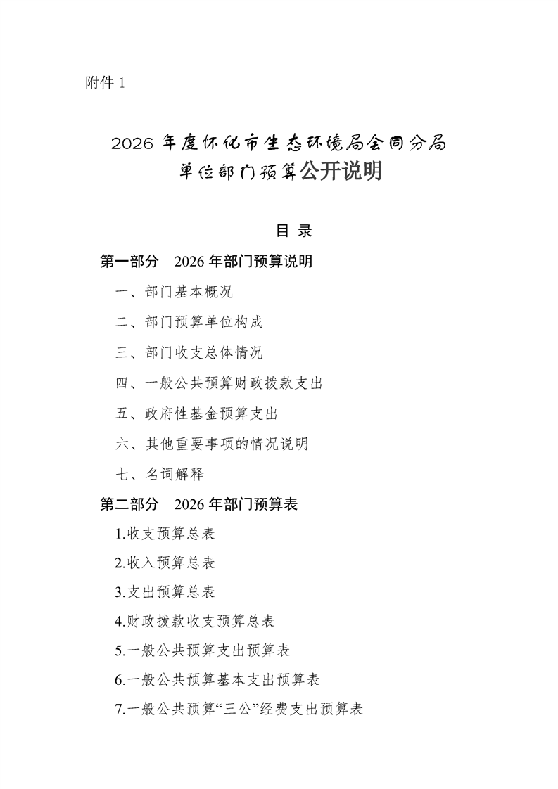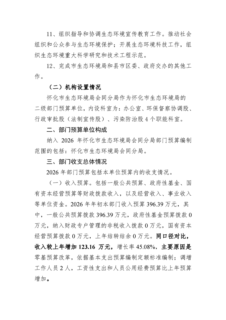 2026年度怀化市生态环境局部门预算公开说明(会同分局)