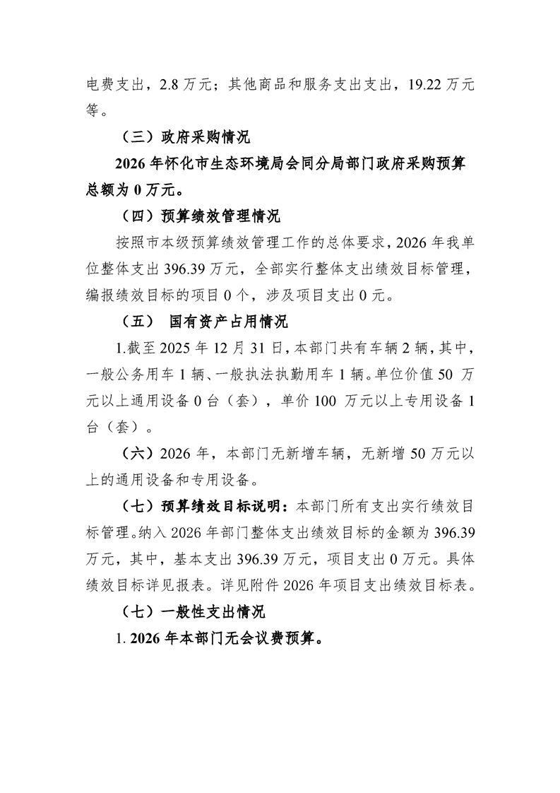 2026年度怀化市生态环境局部门预算公开表(会同分局)