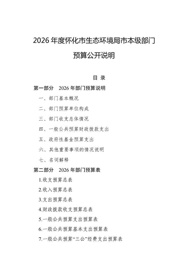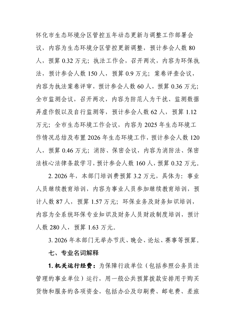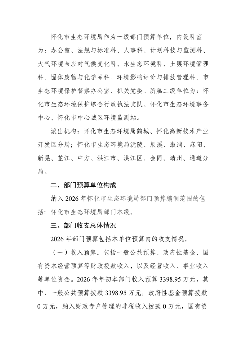 2026年度怀化市生态环境局市本级部门预算公开说明