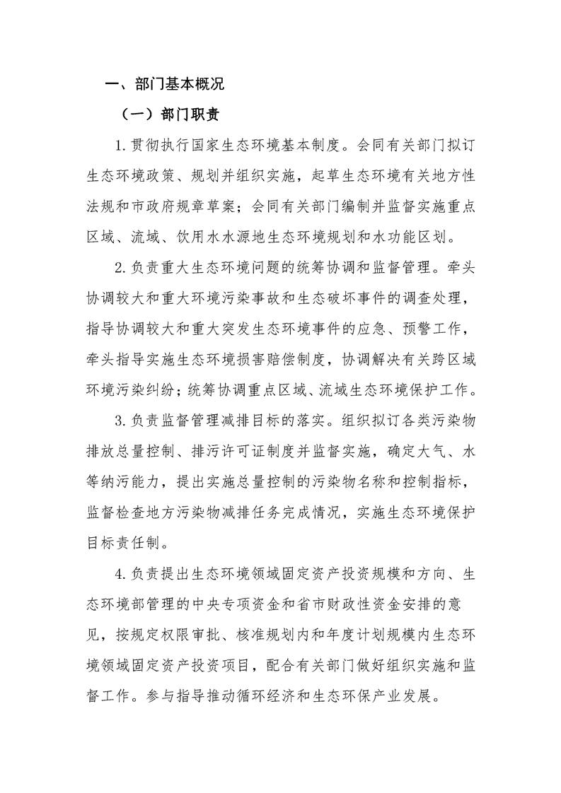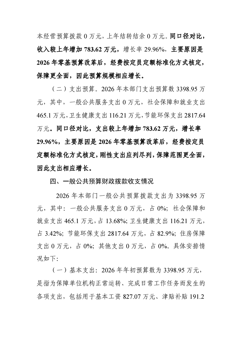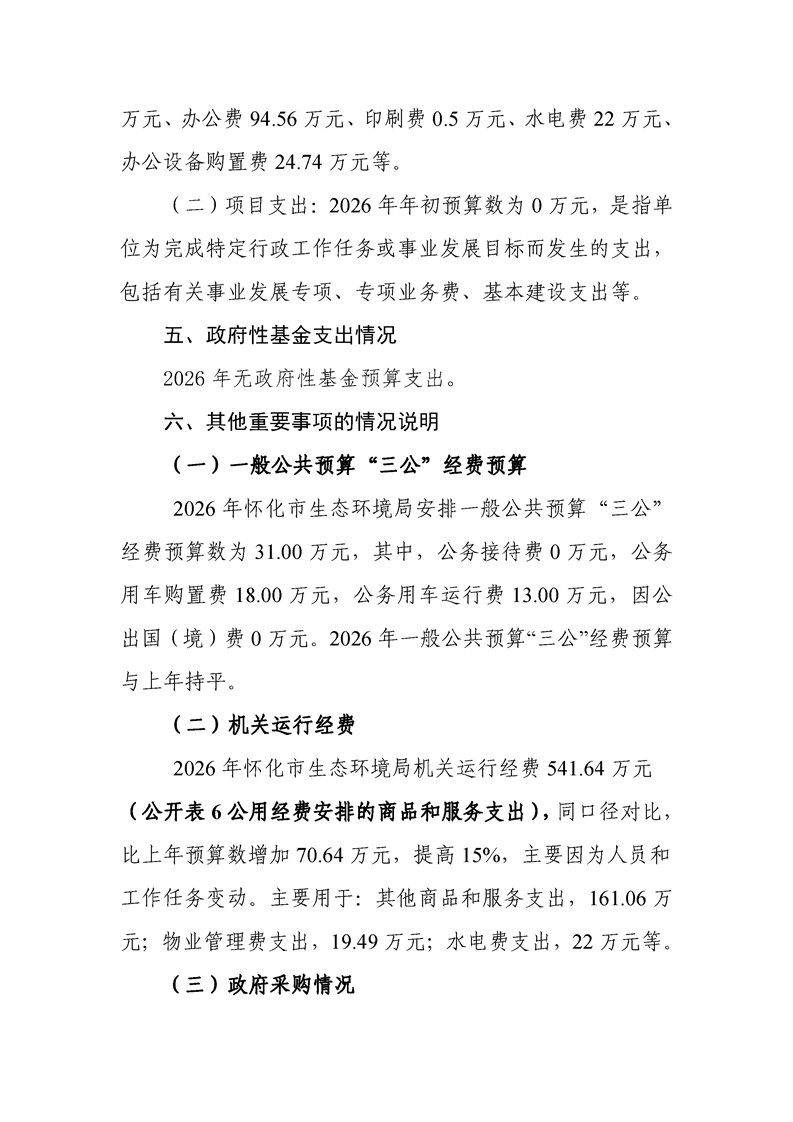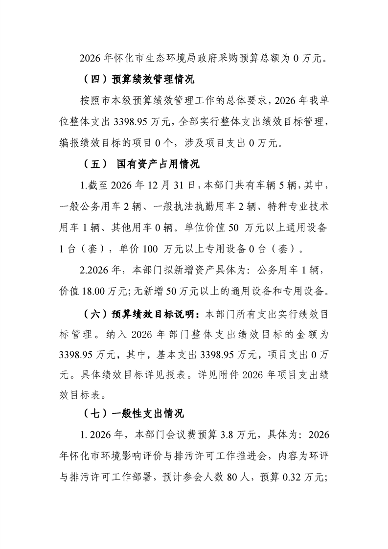 2026年度怀化市生态环境局市本级部门预算公开说明