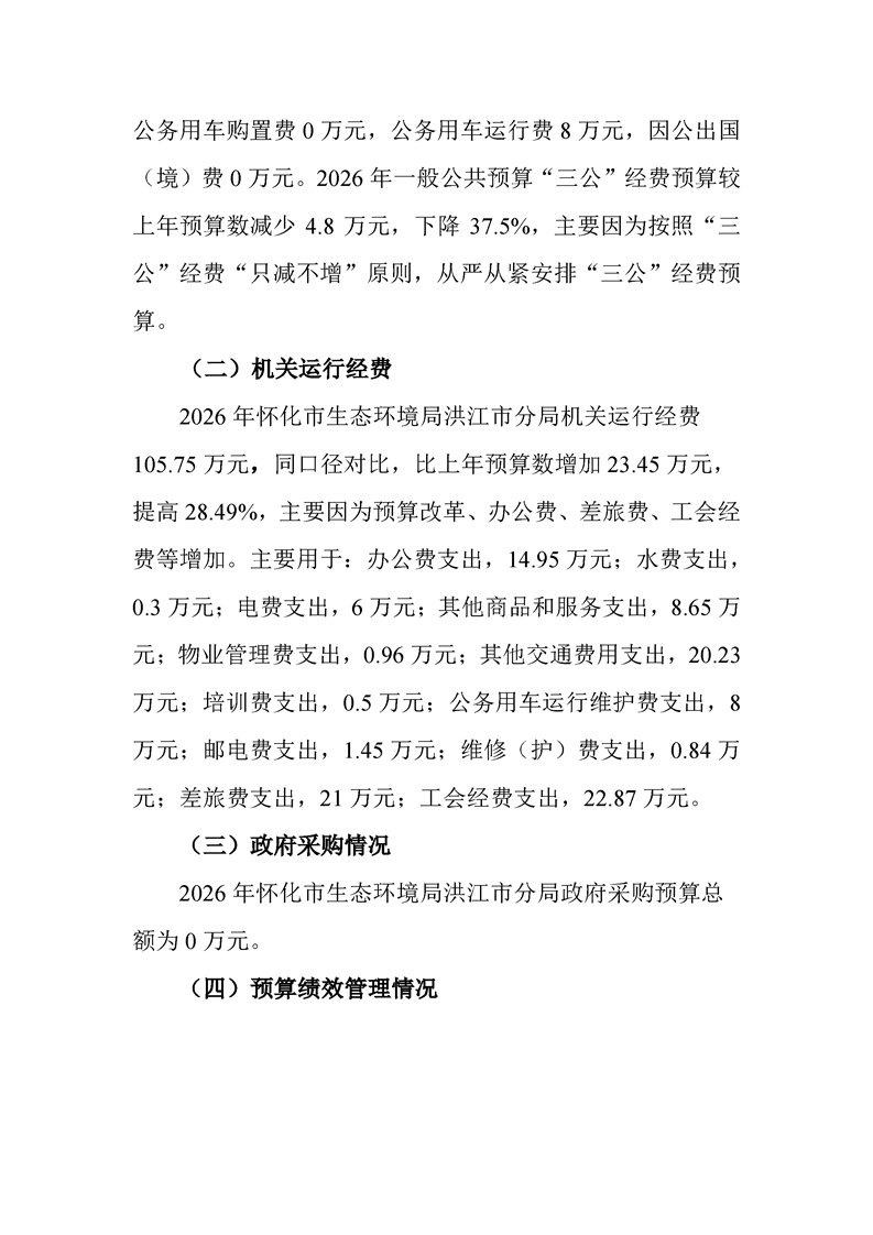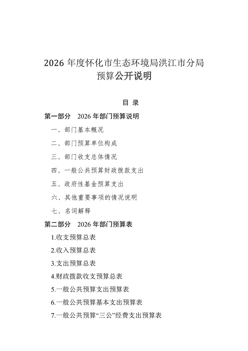 2026年度怀化市生态环境局部门预算公开说明(洪江市分局)