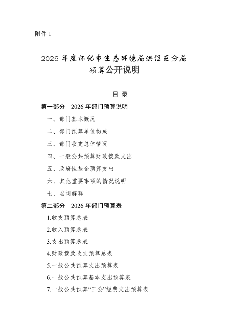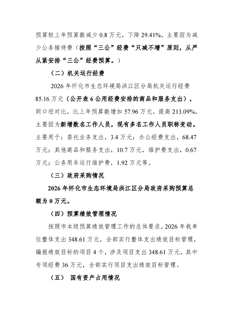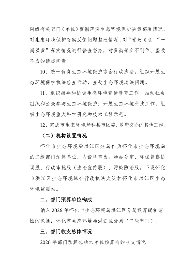 2026年度怀化市生态环境局部门预算公开说明(洪江区分局)