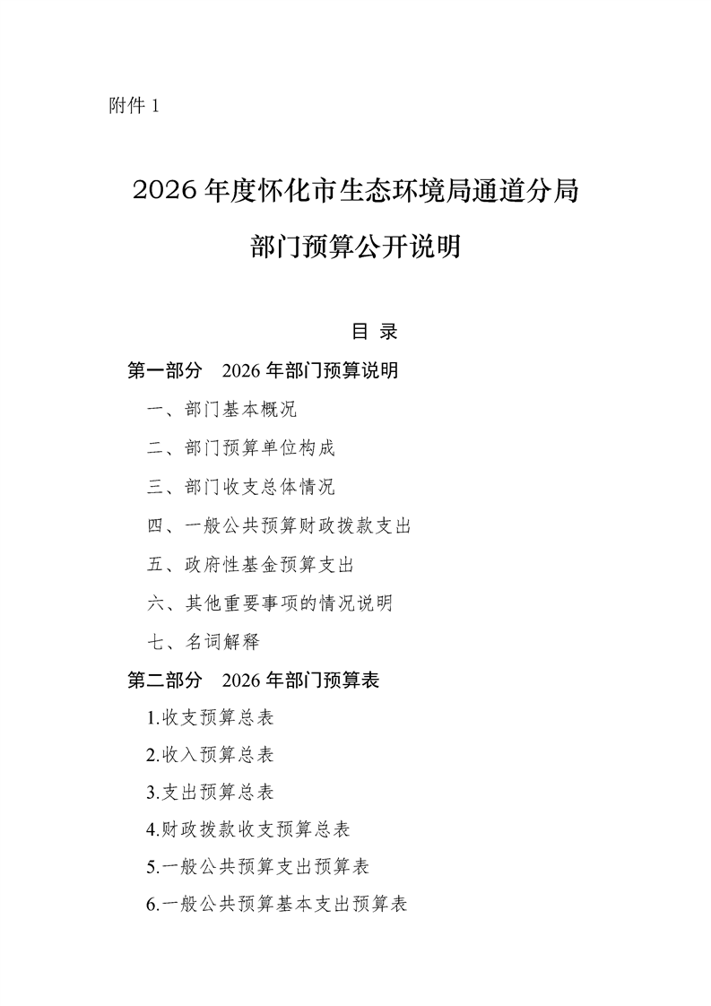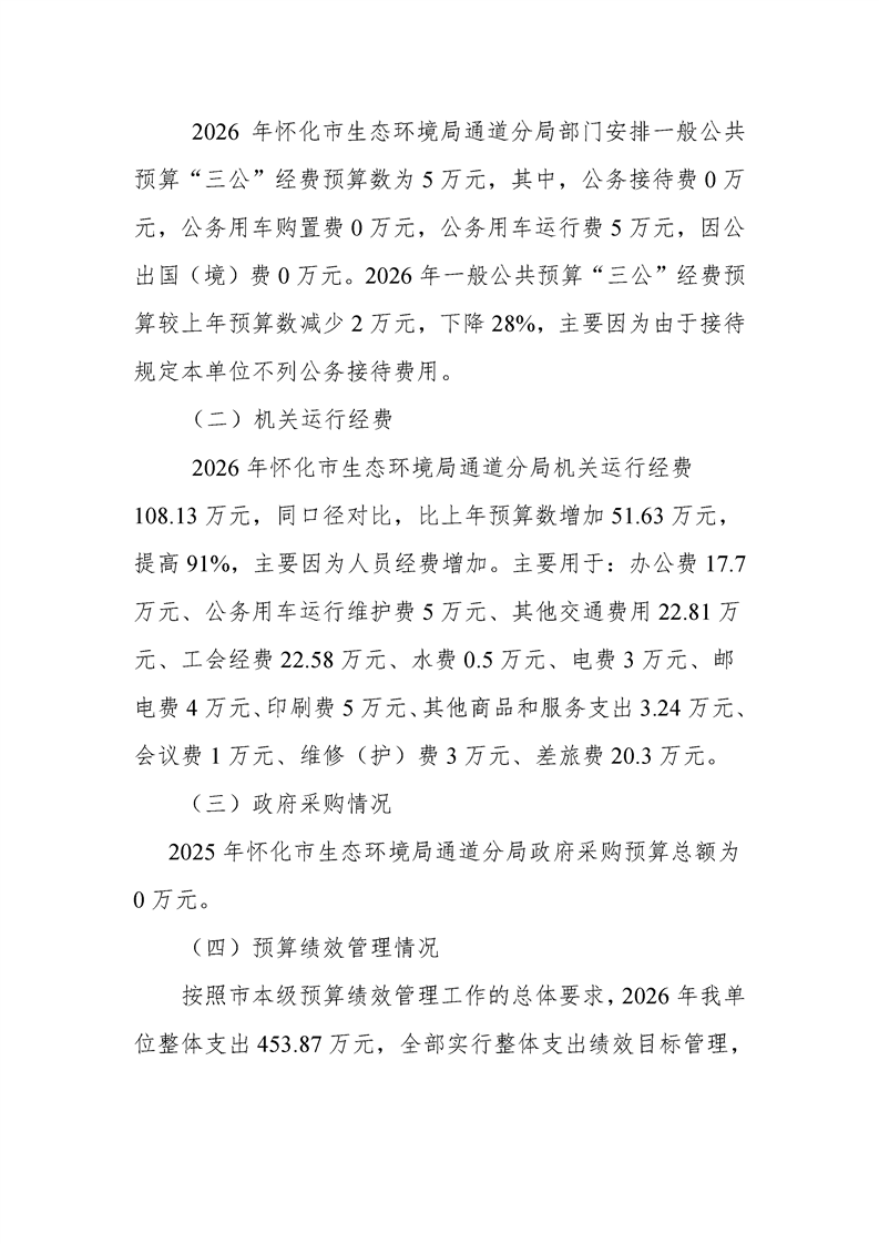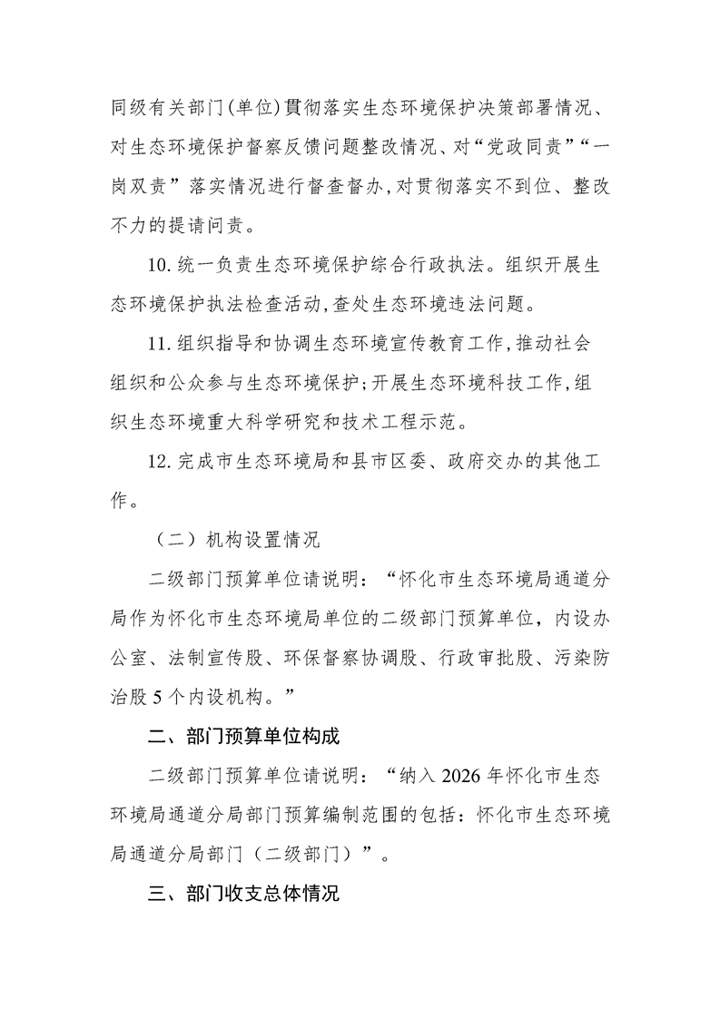 2026年度怀化市生态环境局部门预算公开说明(通道分局)