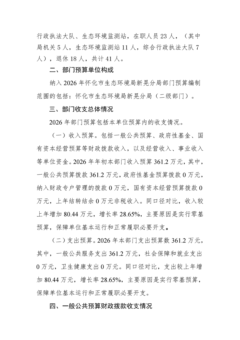 2026年度怀化市生态环境局部门预算公开说明(新晃分局)