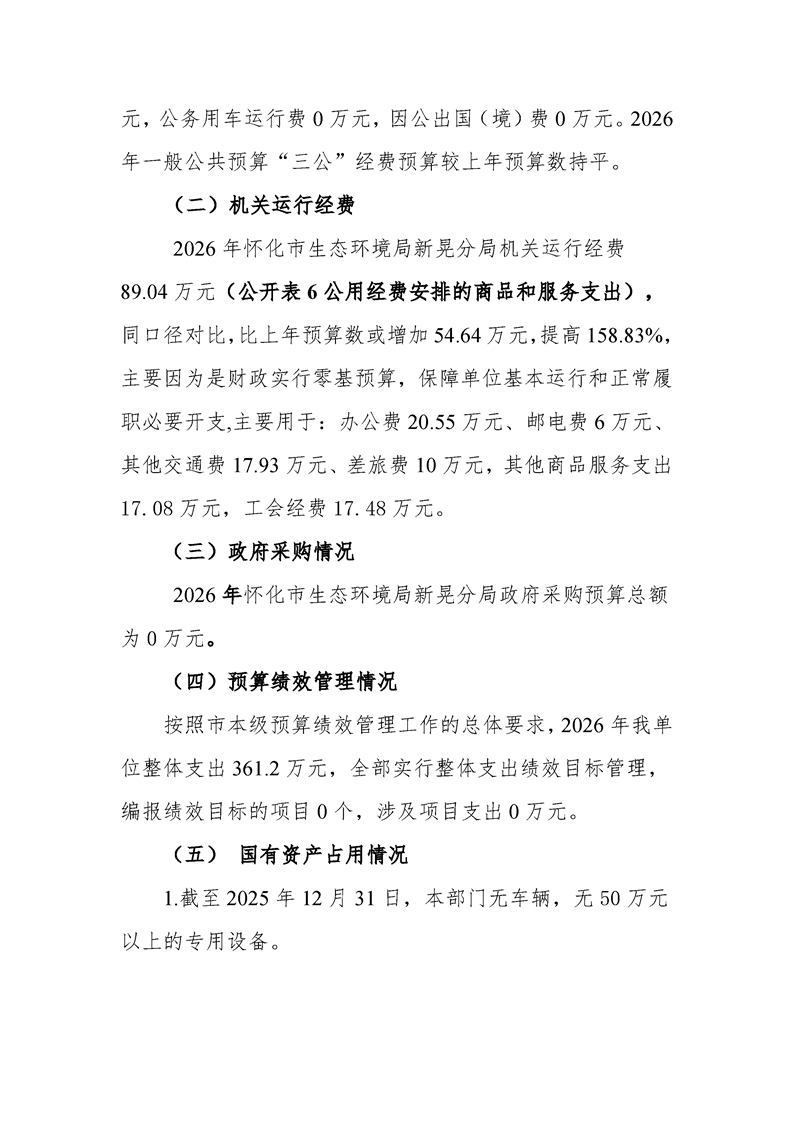2026年度怀化市生态环境局部门预算公开表(新晃分局)