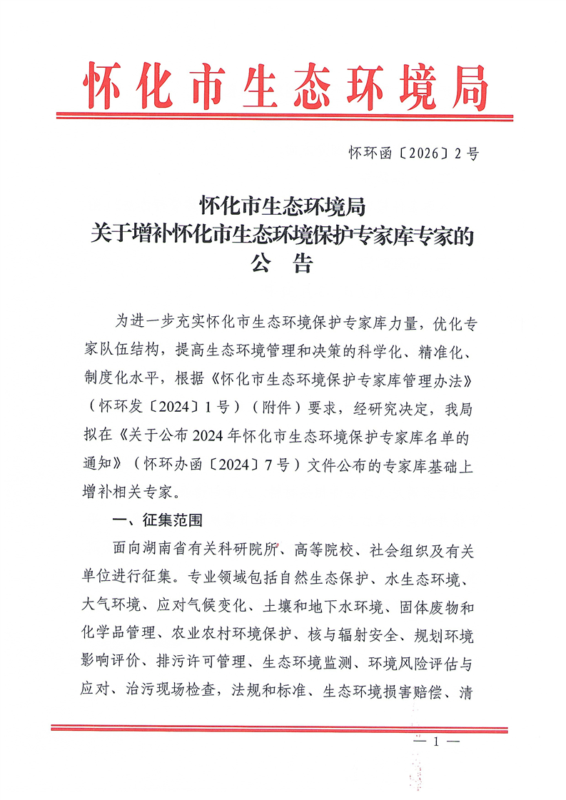 怀化市生态环境局关于增补怀化市生态环境保护专家库专家的公告