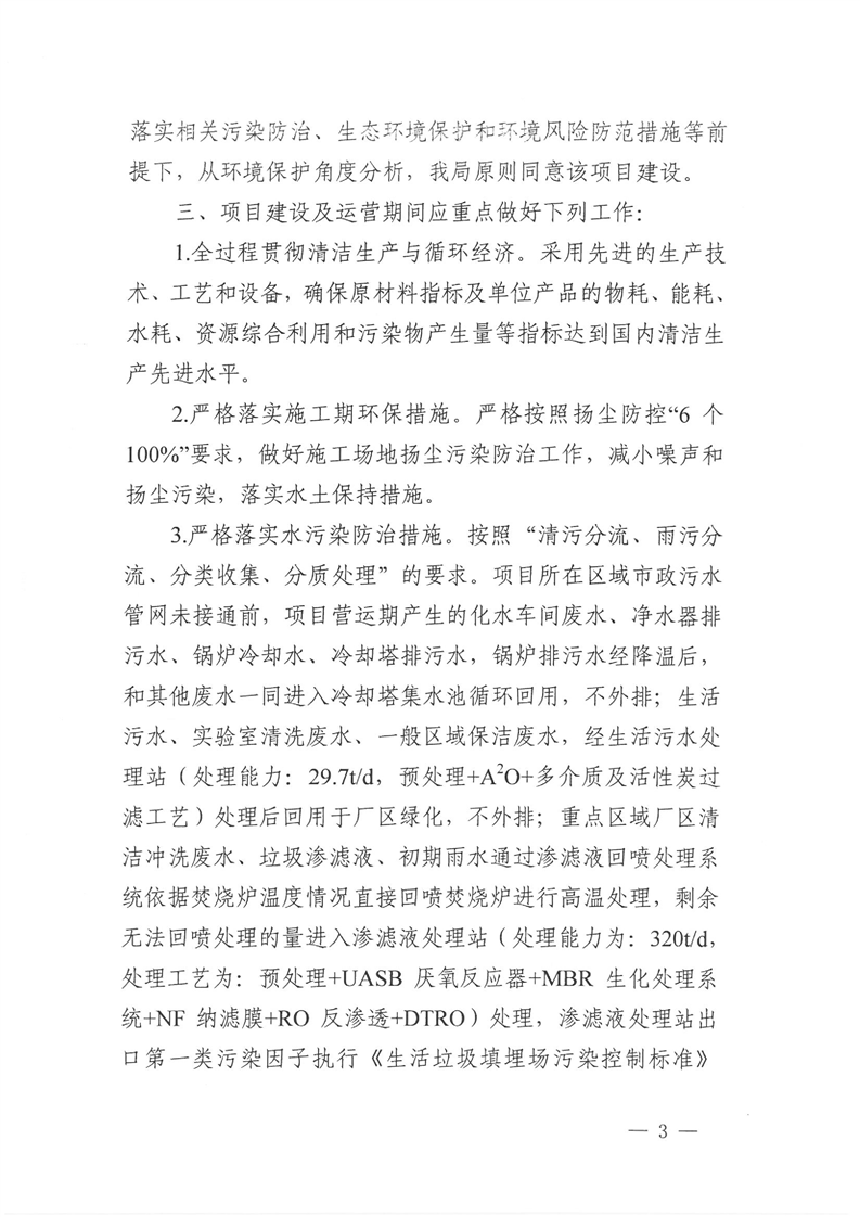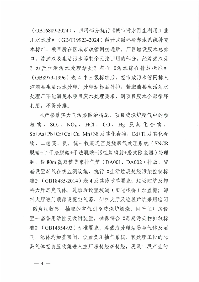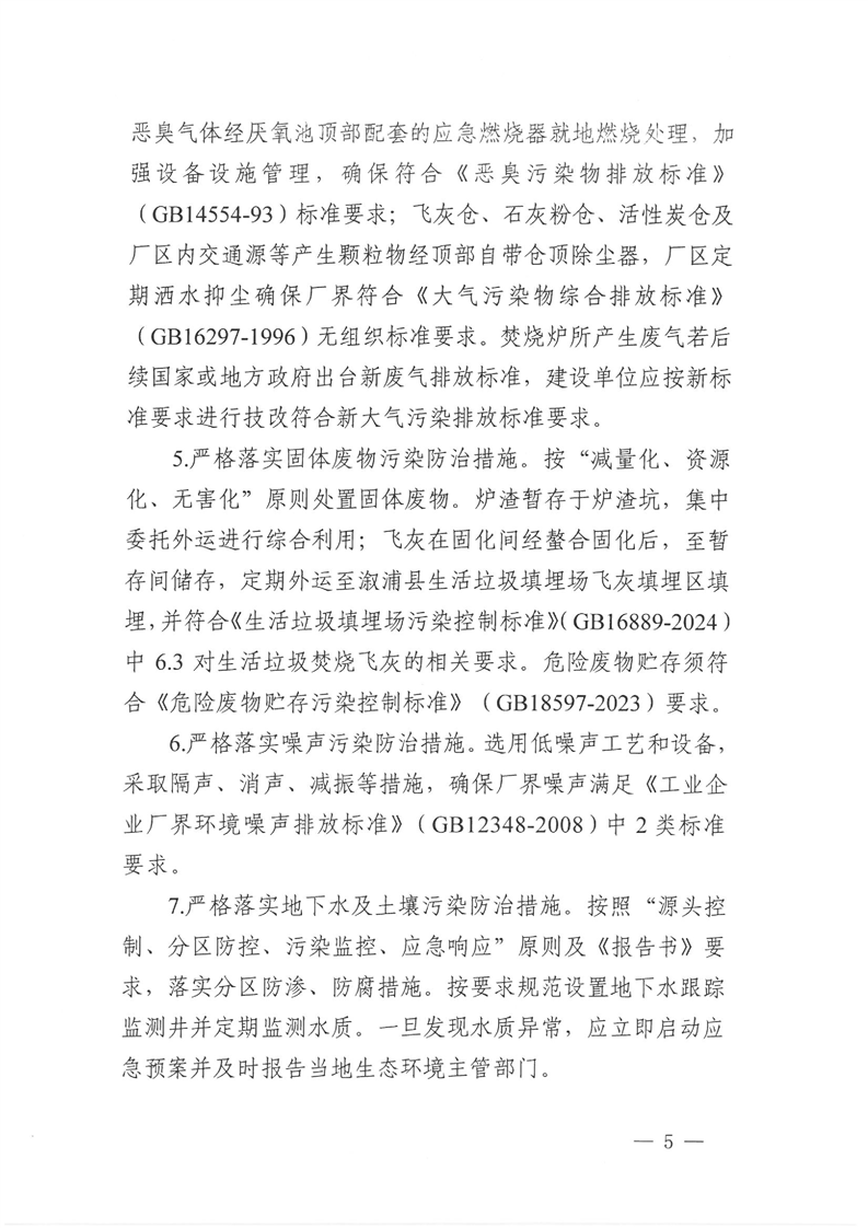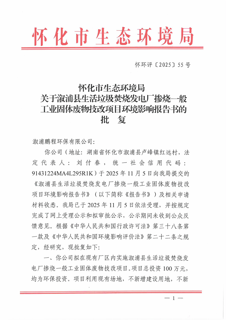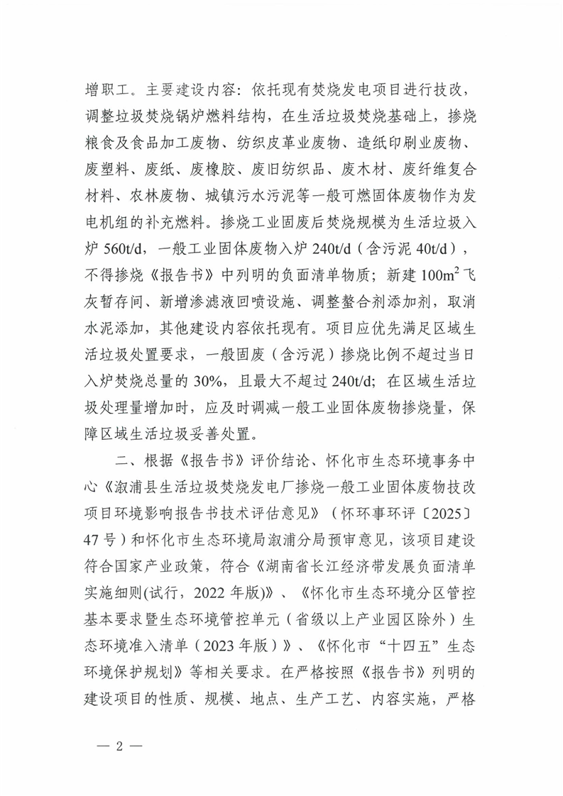 关于溆浦县生活垃圾焚烧发电厂掺烧一般工业固体废物技改项目环境影响报告书的批复