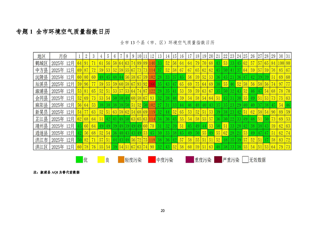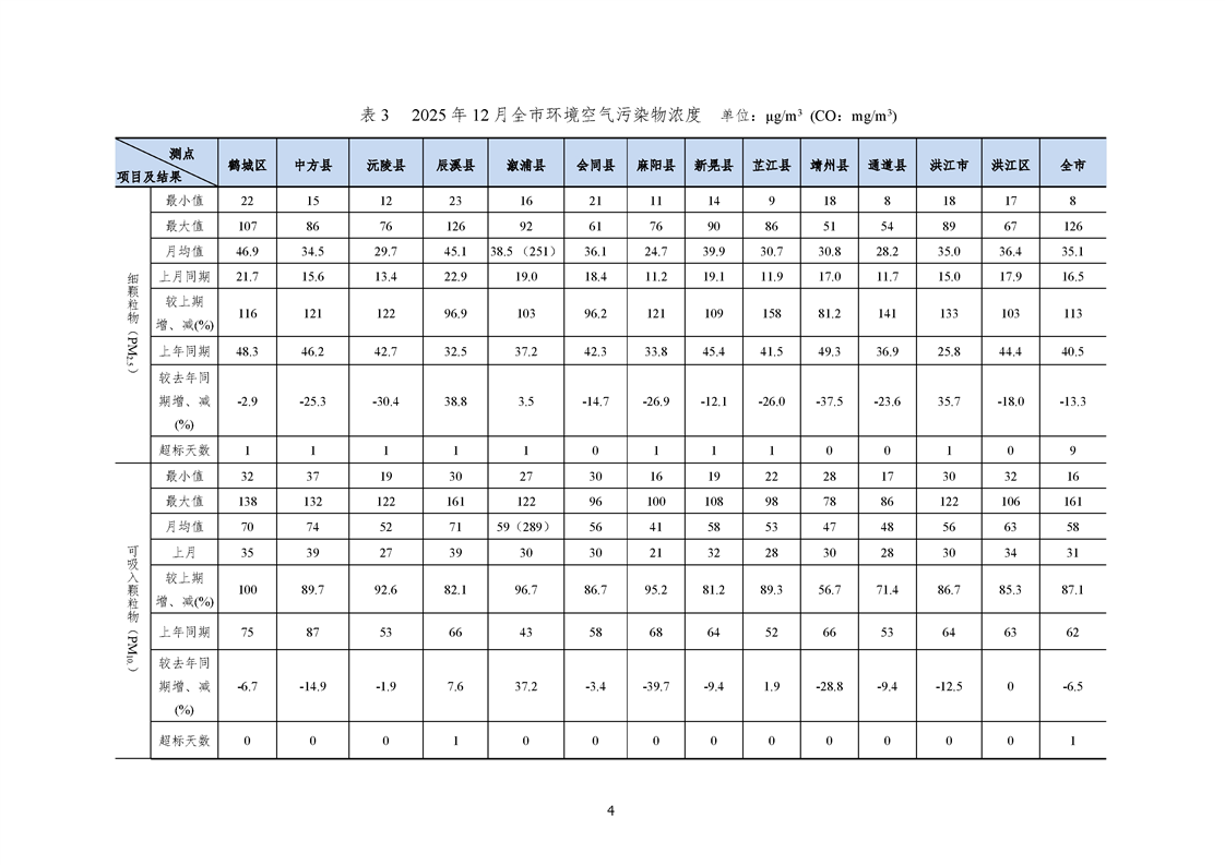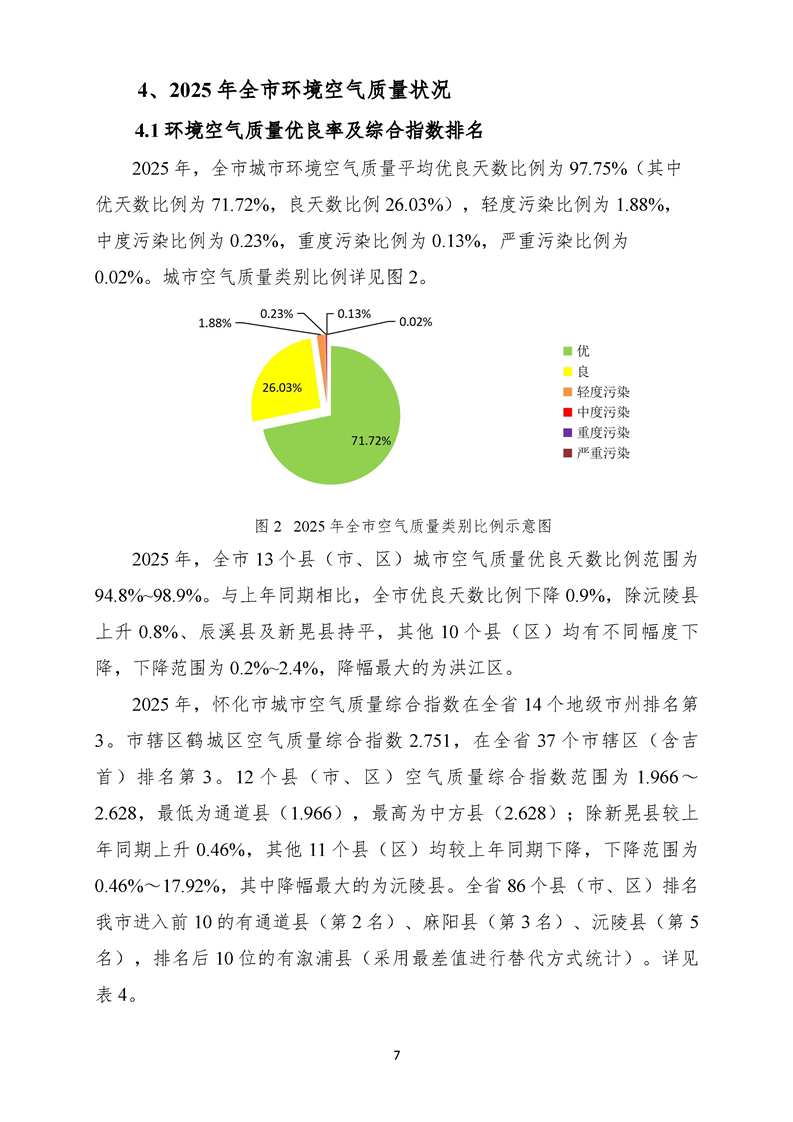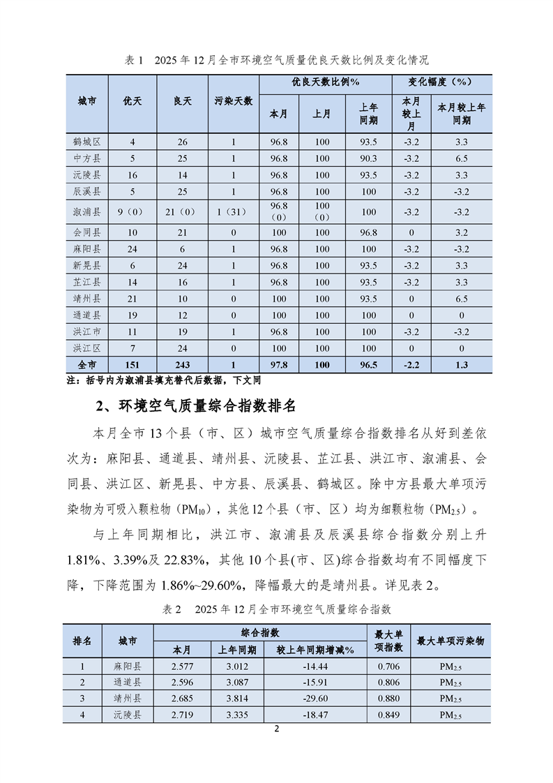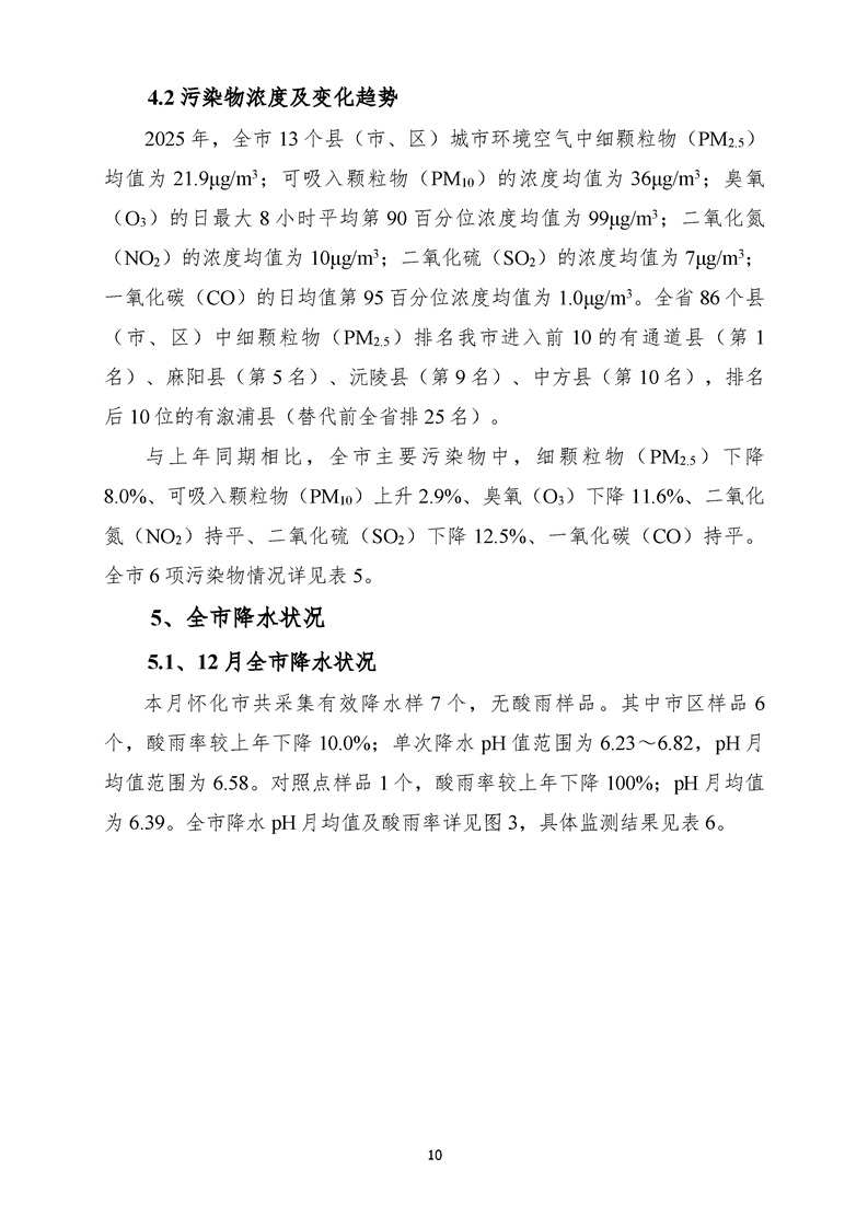 2025年12月怀化市环境空气质量月报
