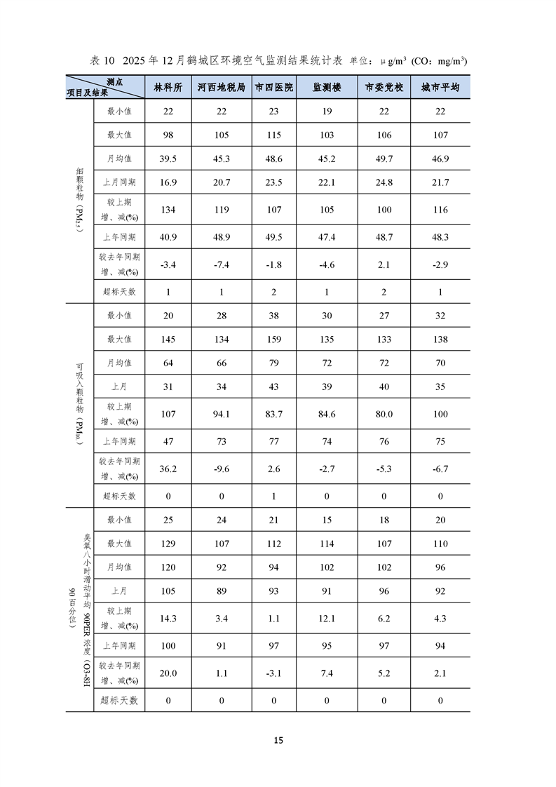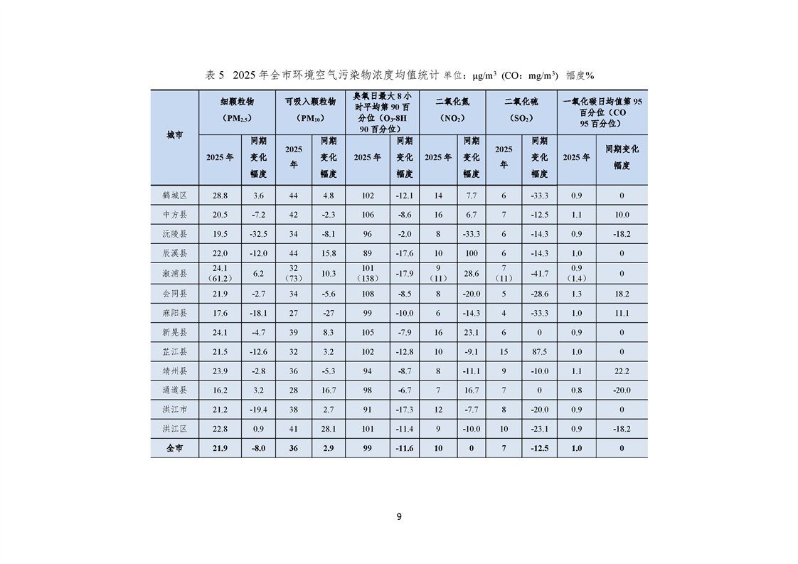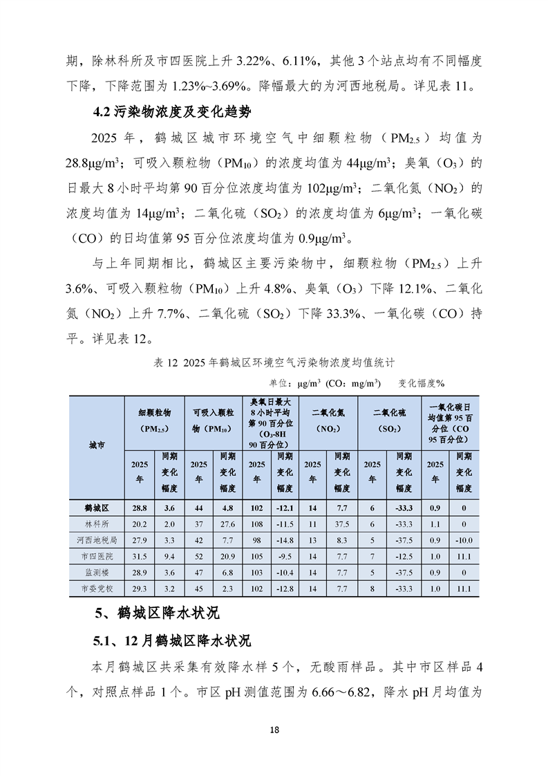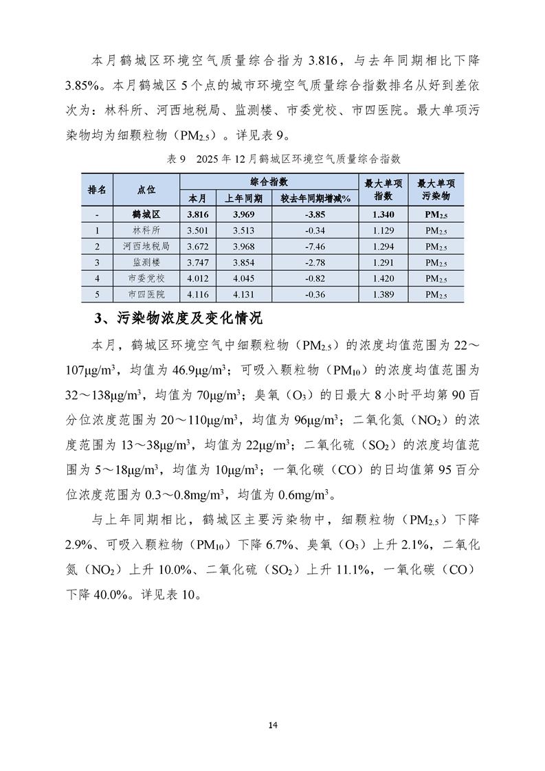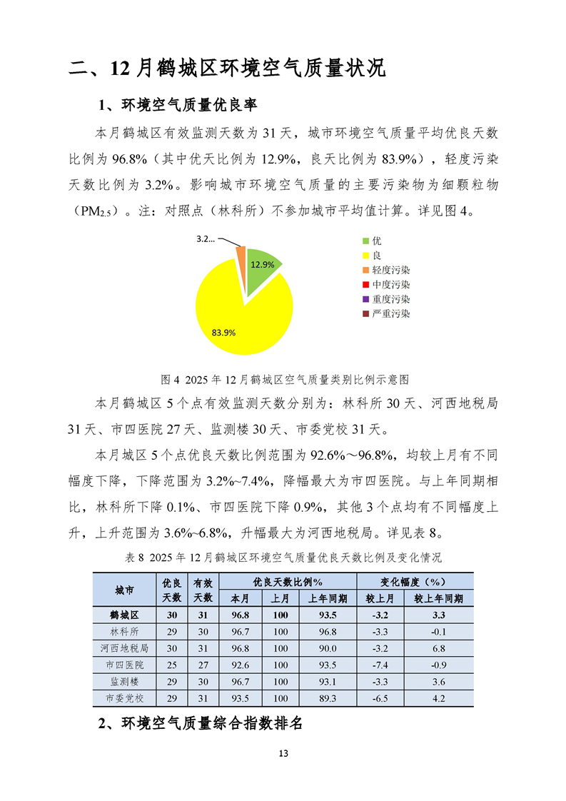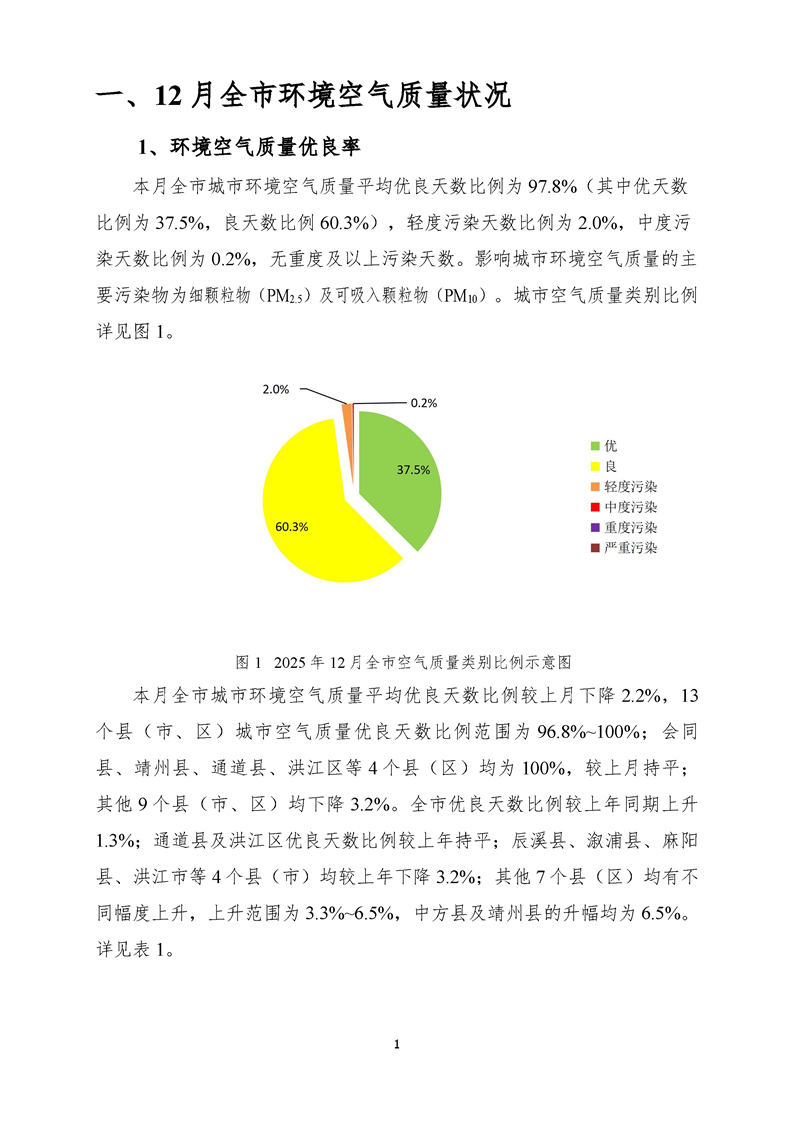 2025年12月怀化市环境空气质量月报