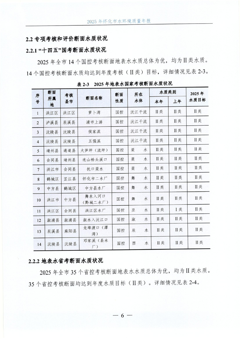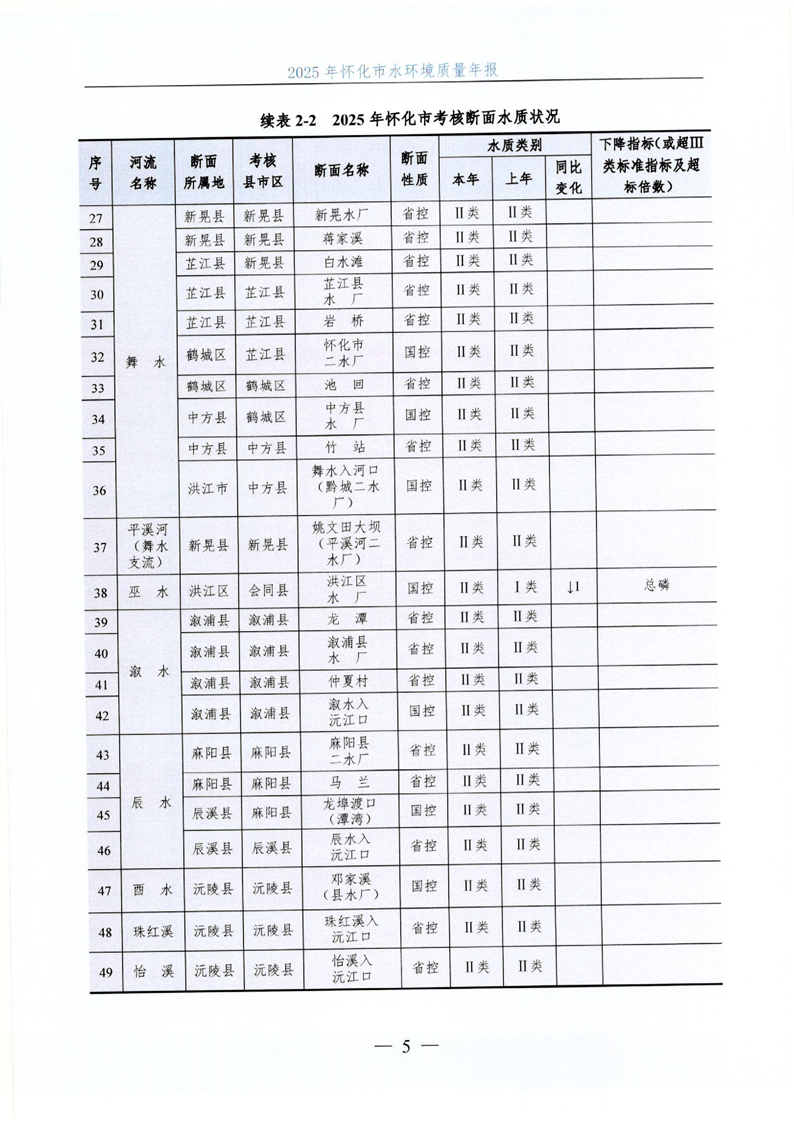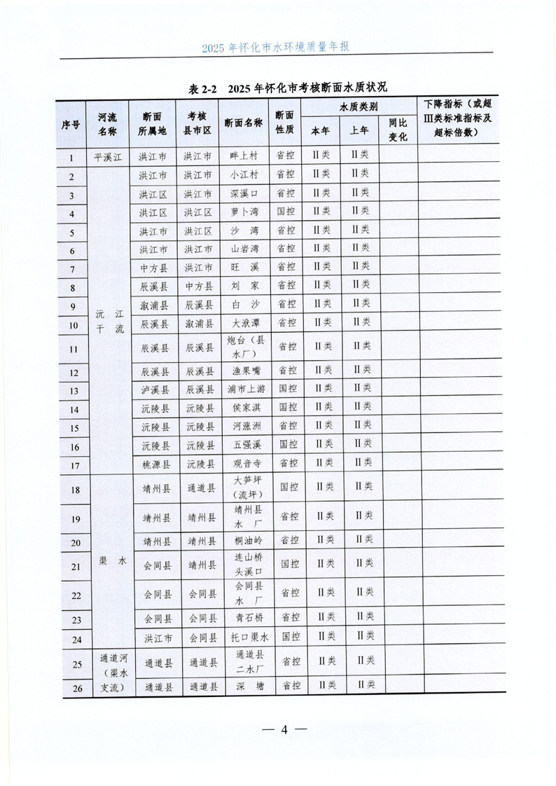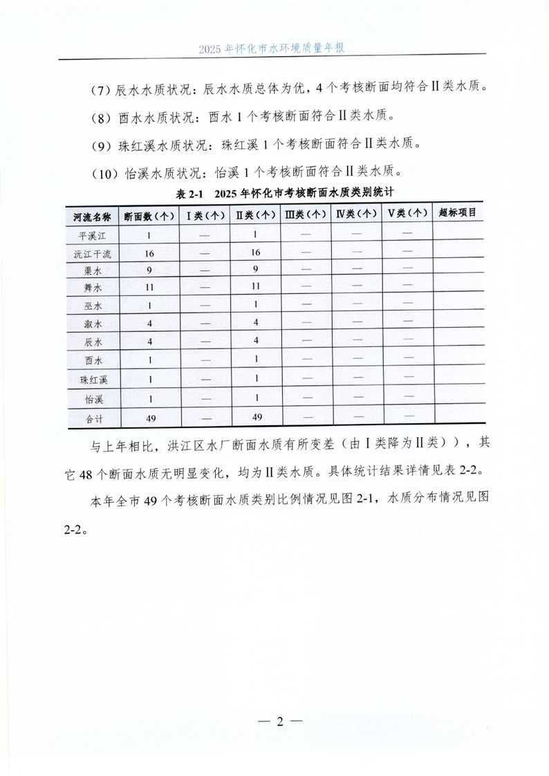 2025年怀化市水环境质量年报