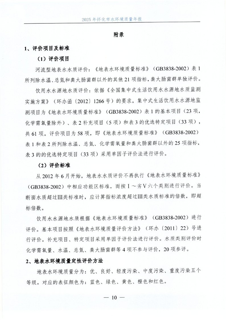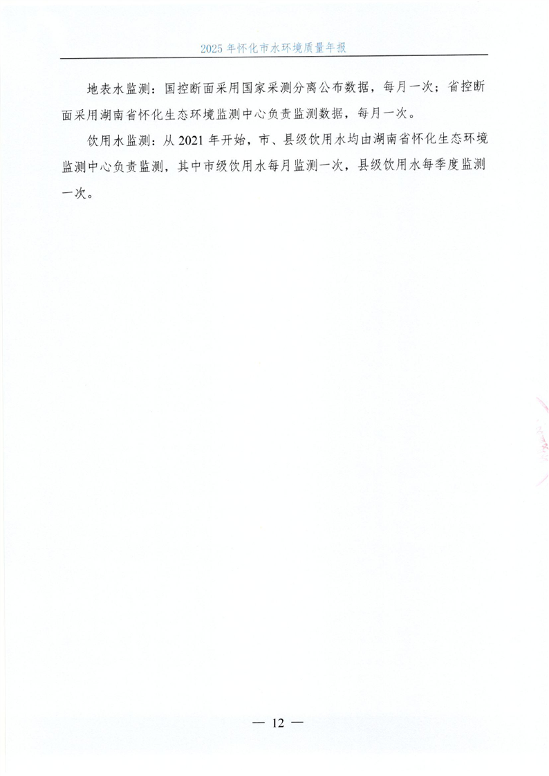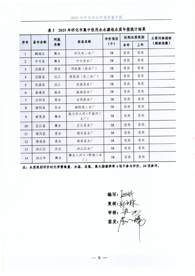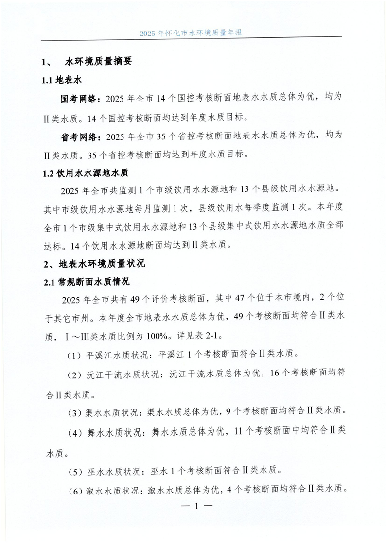 2025年怀化市水环境质量年报
