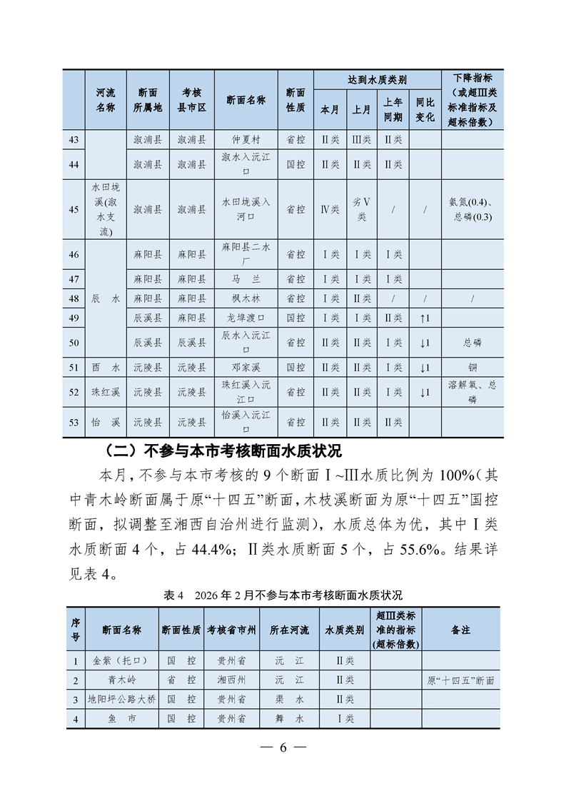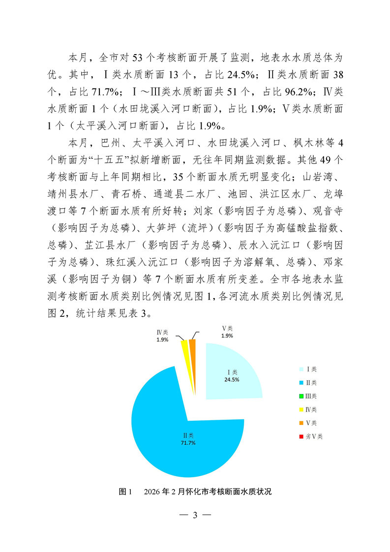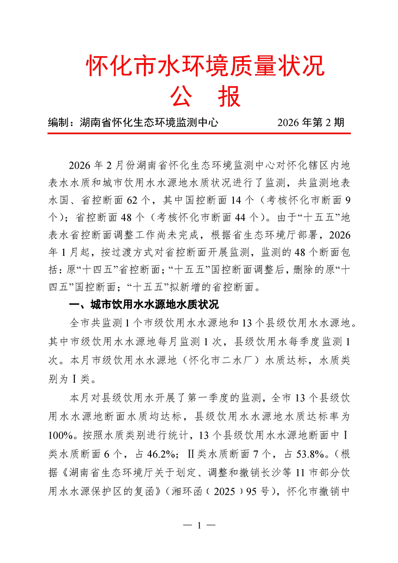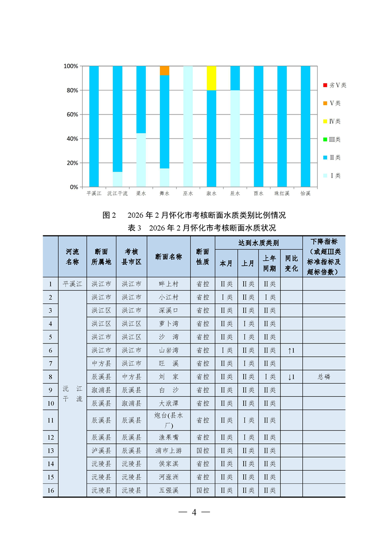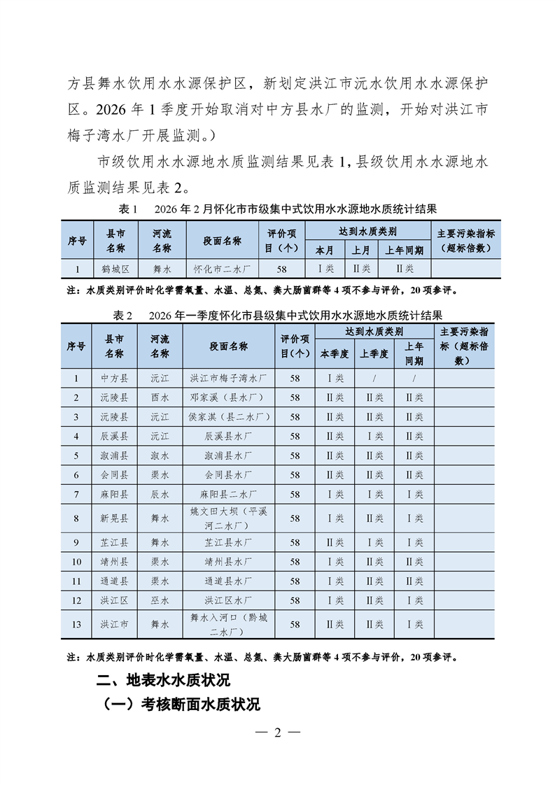 2026年2月怀化市水环境质量公报