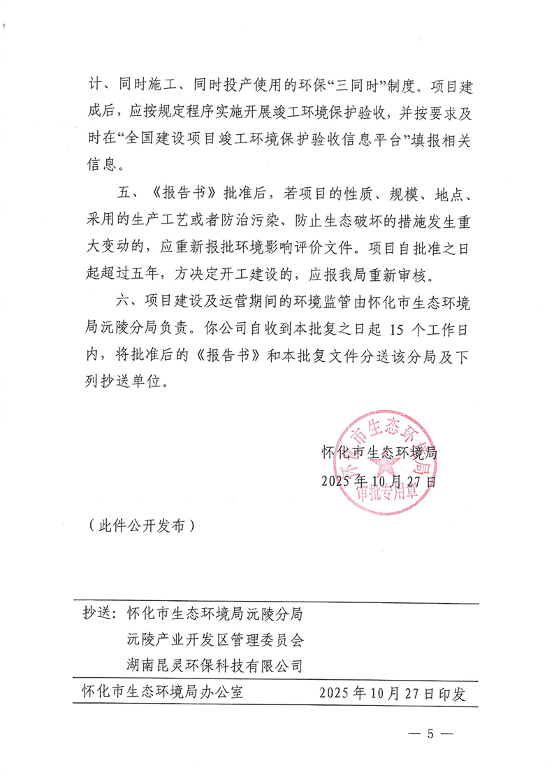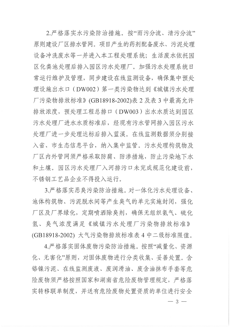 关于沅陵产业开发区污水处理厂电解抛光废水预处理工程环境影响报告书的批复