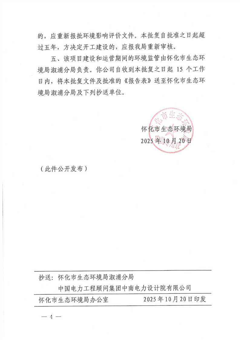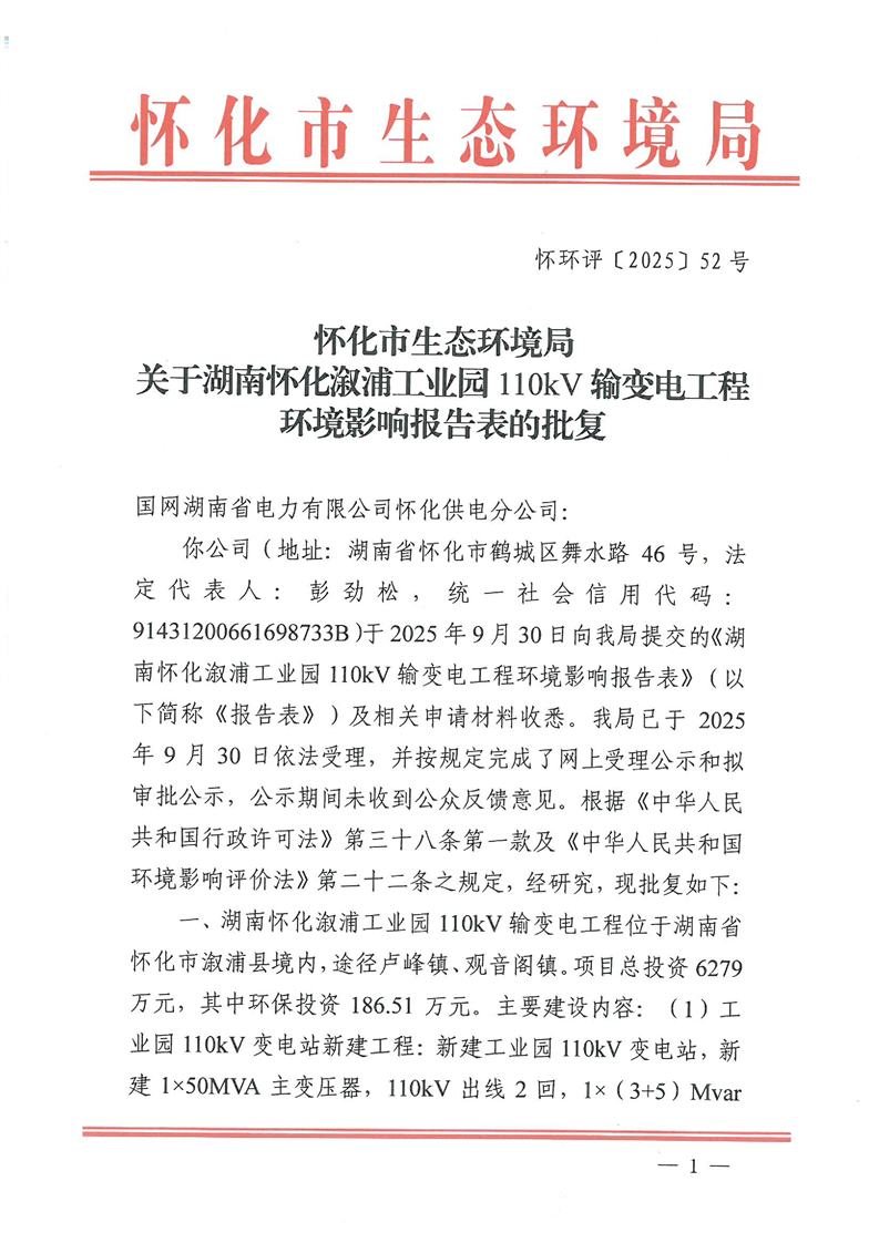 关于湖南怀化溆浦工业园110kV输变电工程环境影响报告表的批复