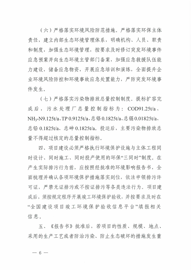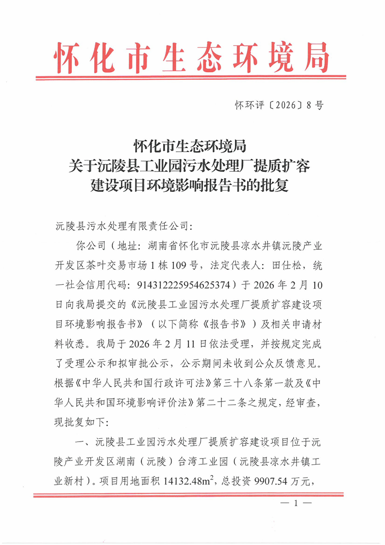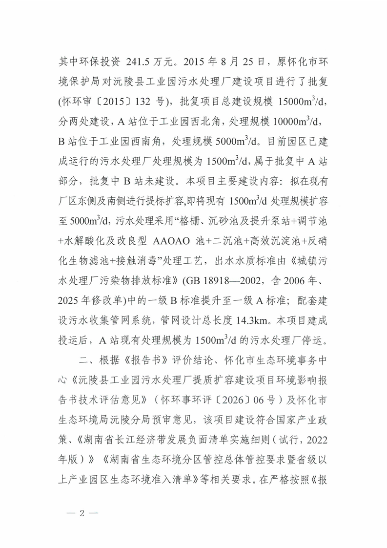 关于沅陵县工业园污水处理厂提质扩容建设项目环境影响报告书的批复
