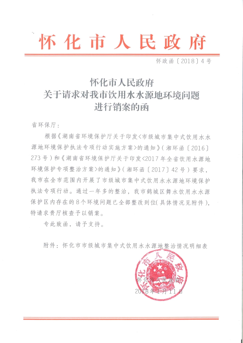 饮用水水源地环境问题整改销号公示