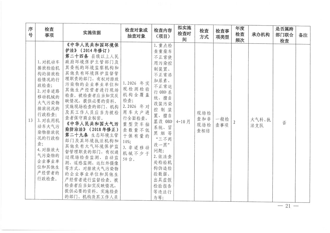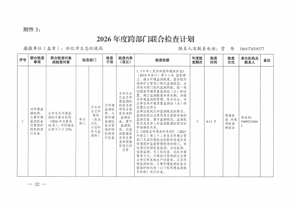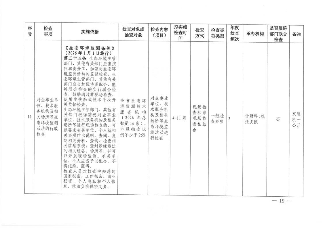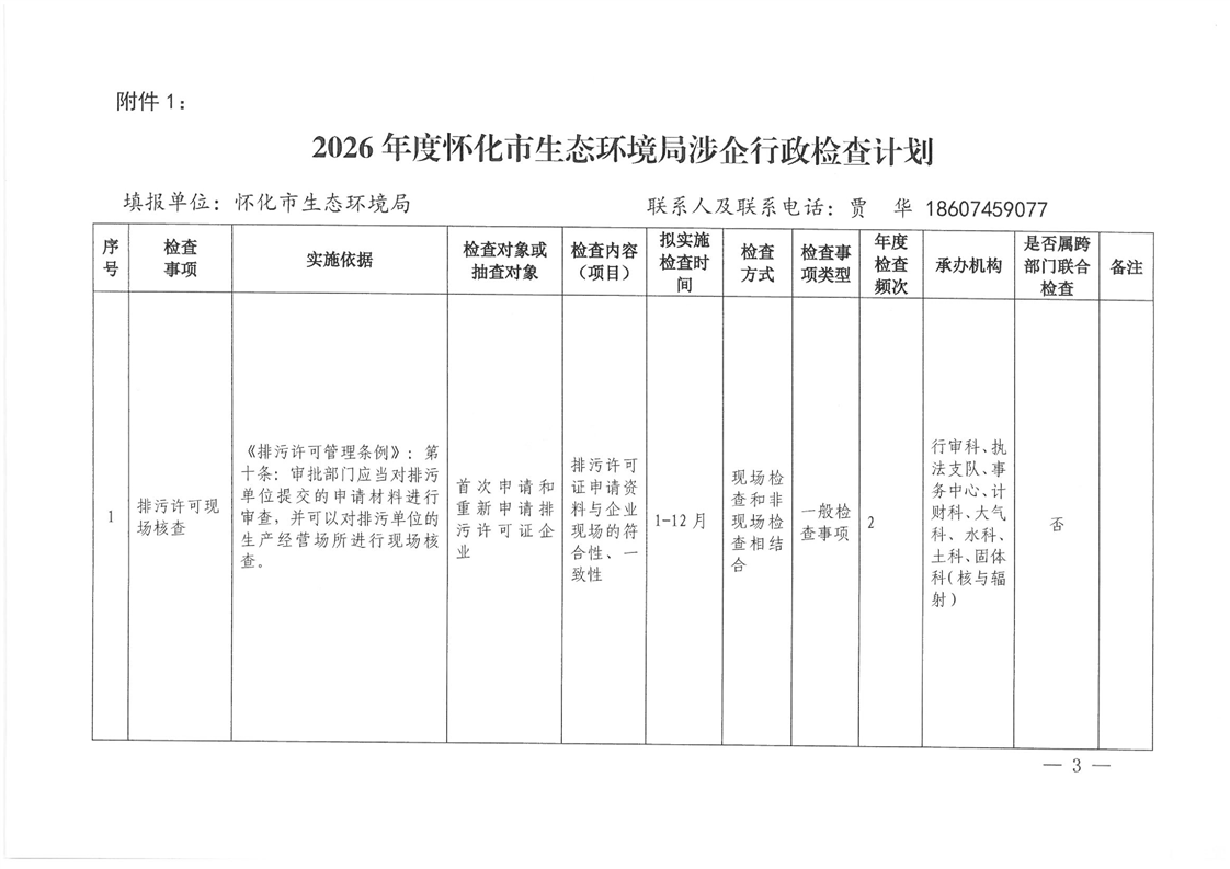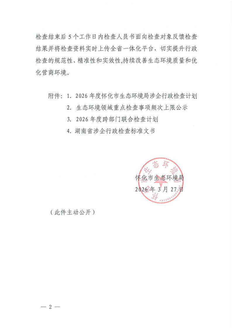 关于印发《2026年度怀化市生态环境局涉企行政检查计划》的通知