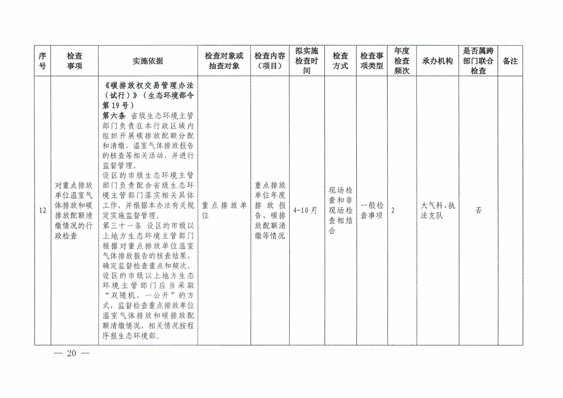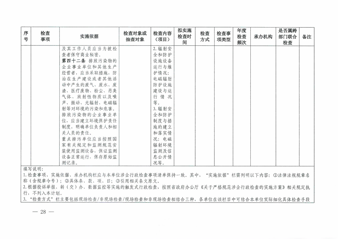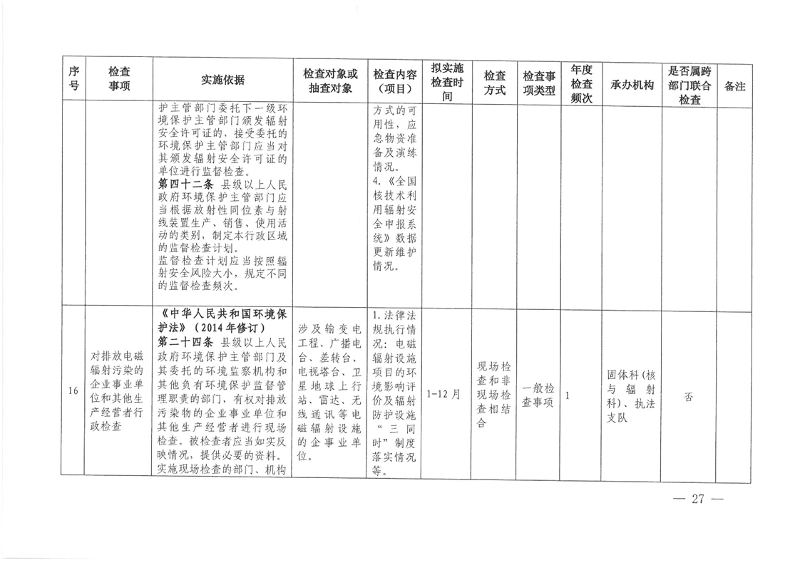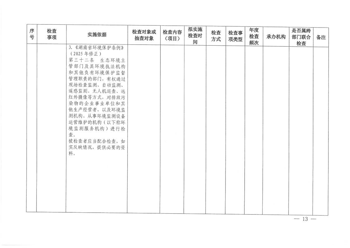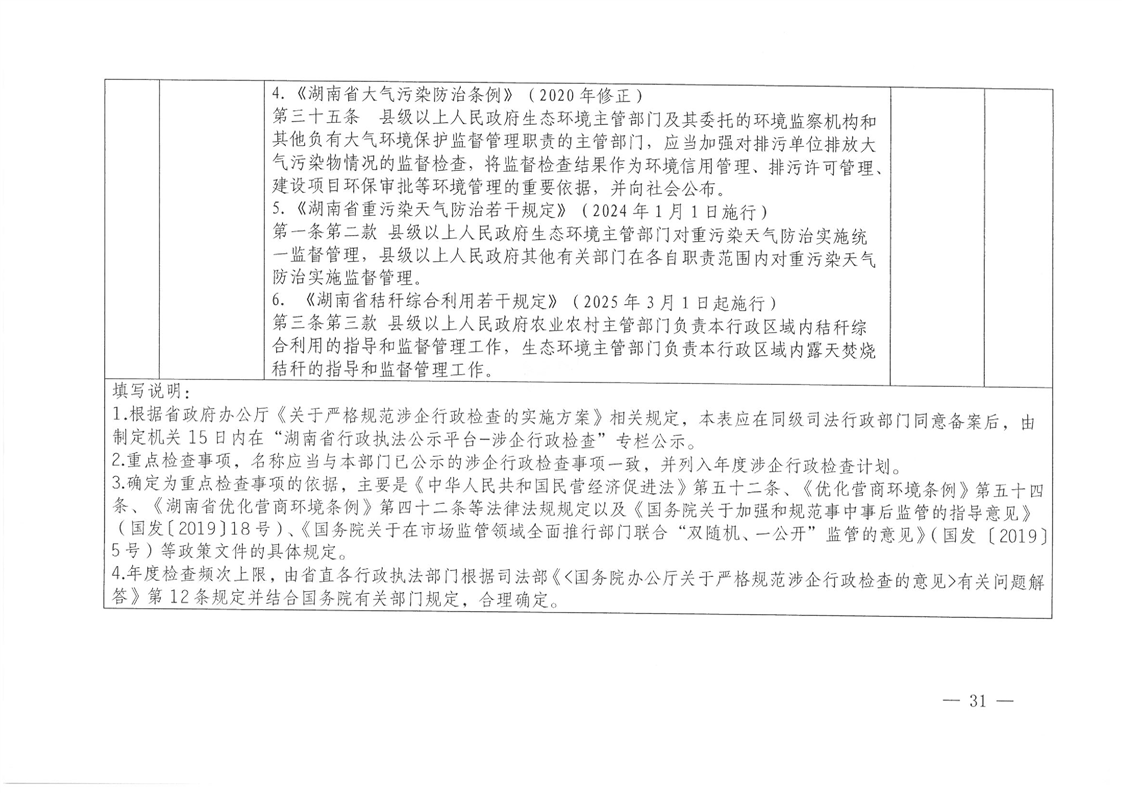 关于印发《2026年度怀化市生态环境局涉企行政检查计划》的通知