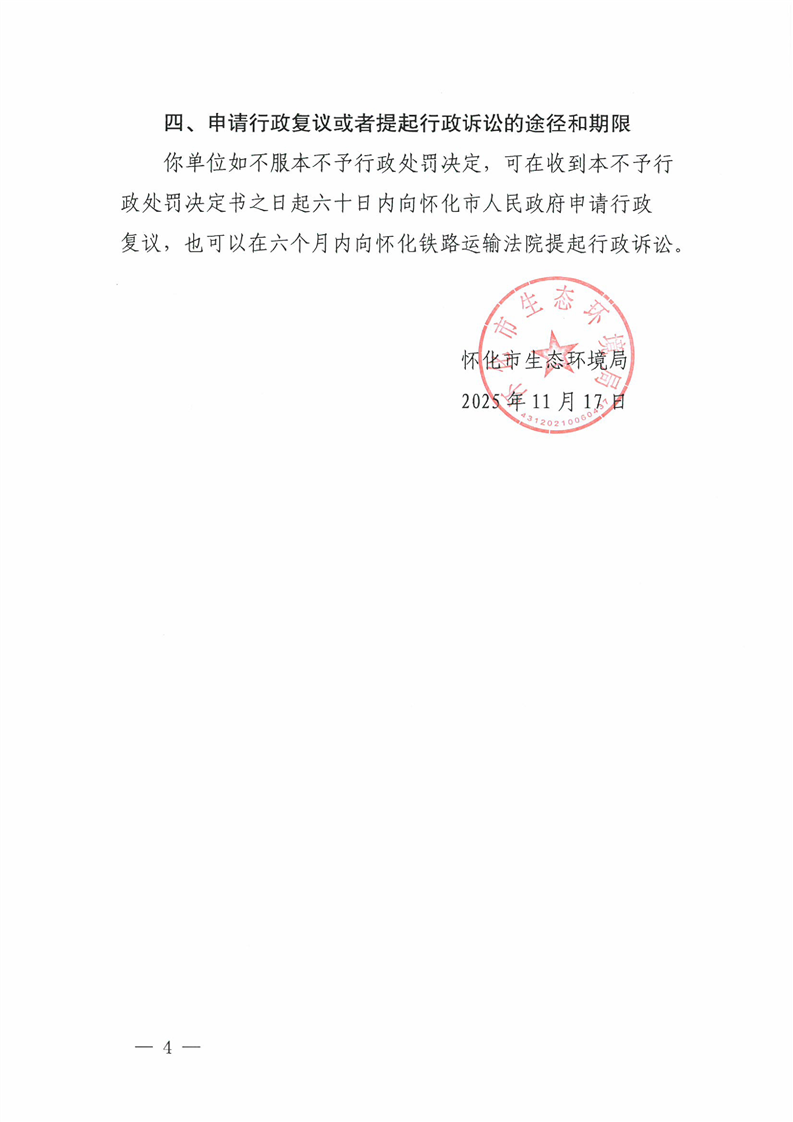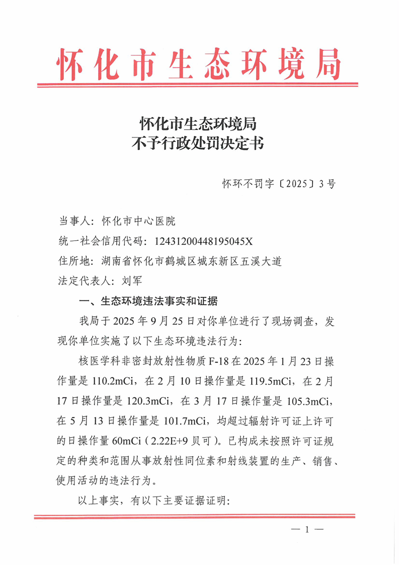 怀化市中心医院不予行政处罚决定书(怀环不罚字〔2025〕3号)
