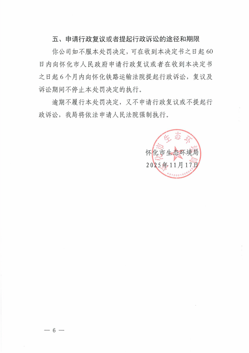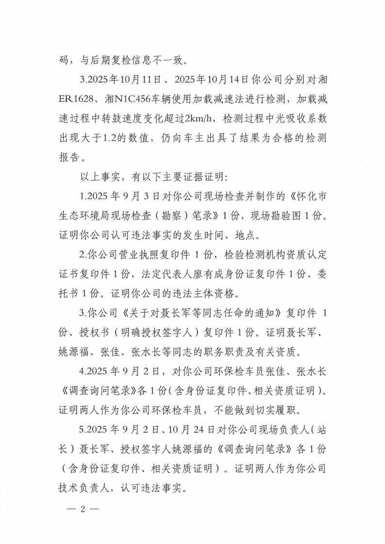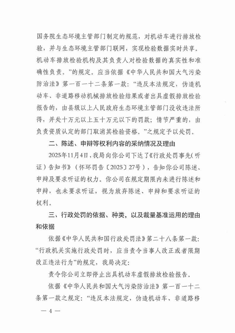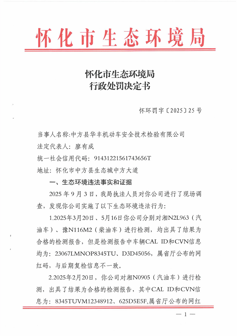 中方县华丰机动车安全技术检验有限公司(怀环罚字〔2025〕25号)