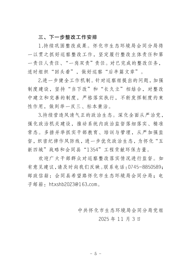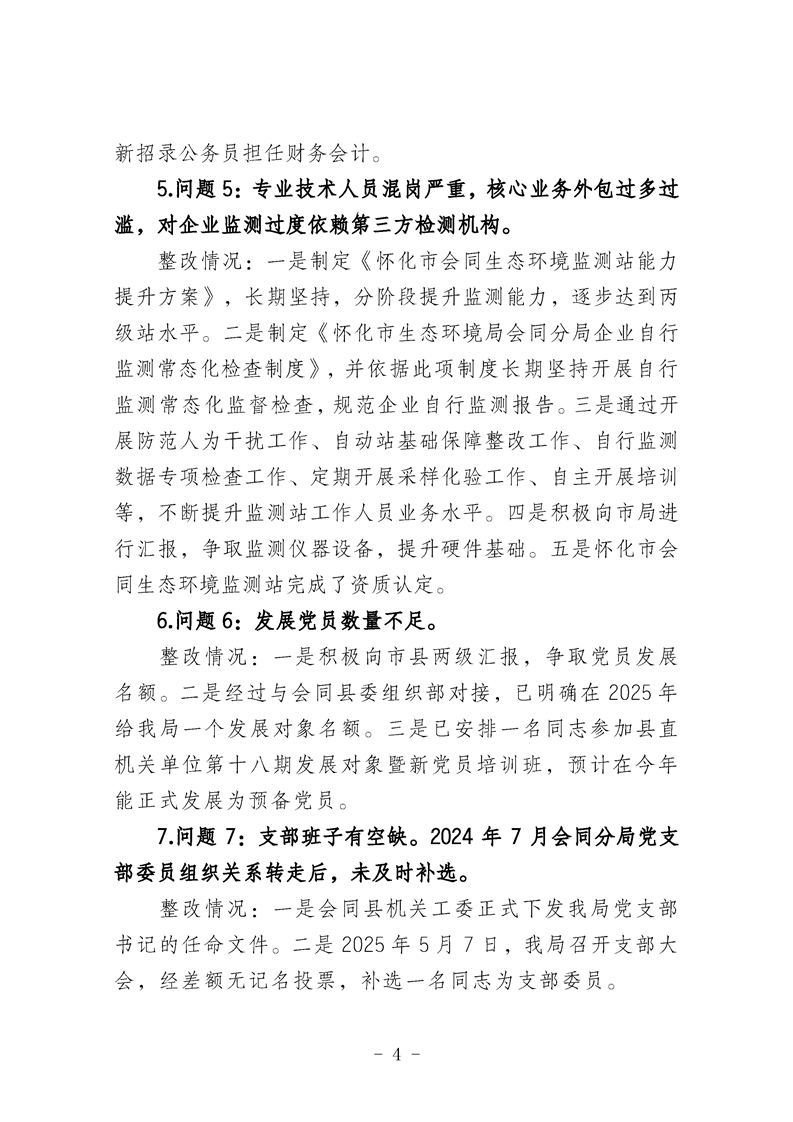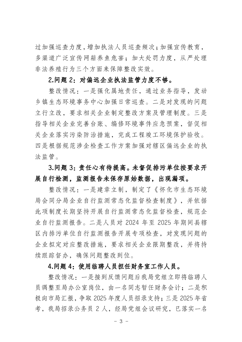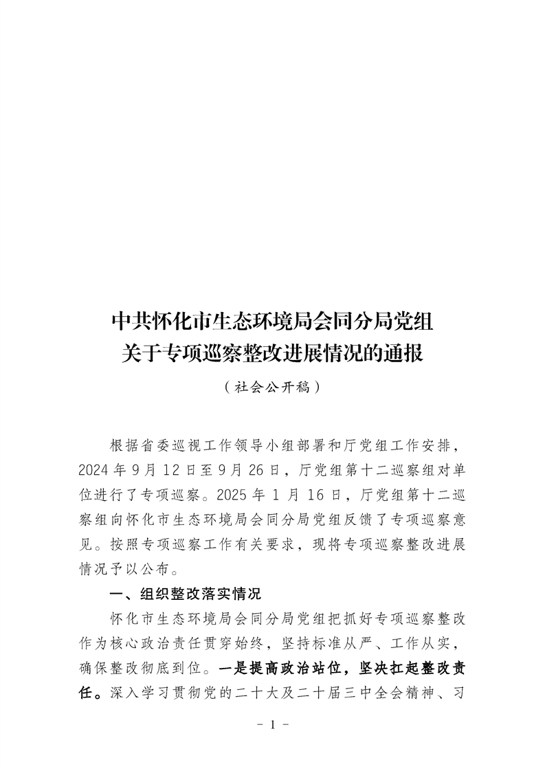 中共怀化市生态环境局会同分局党组关于专项巡察整改进展情况的通报