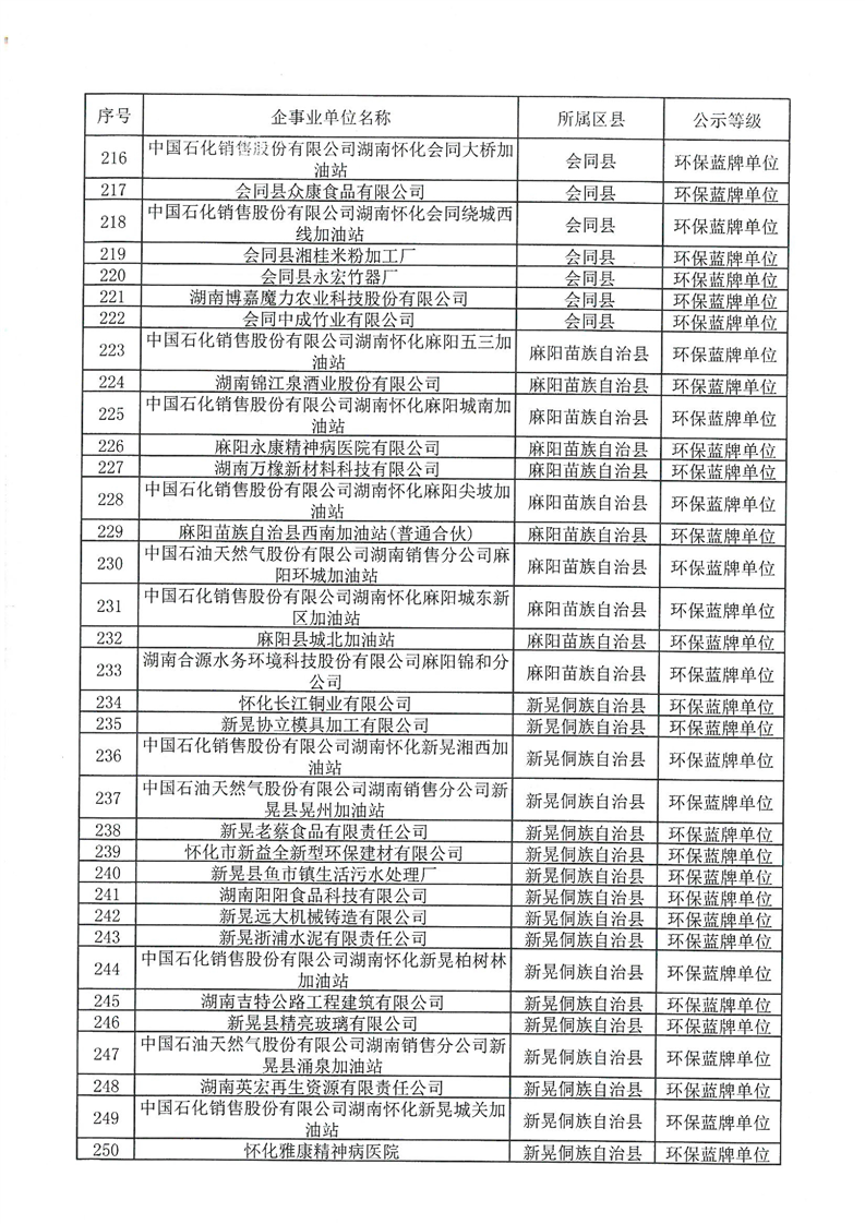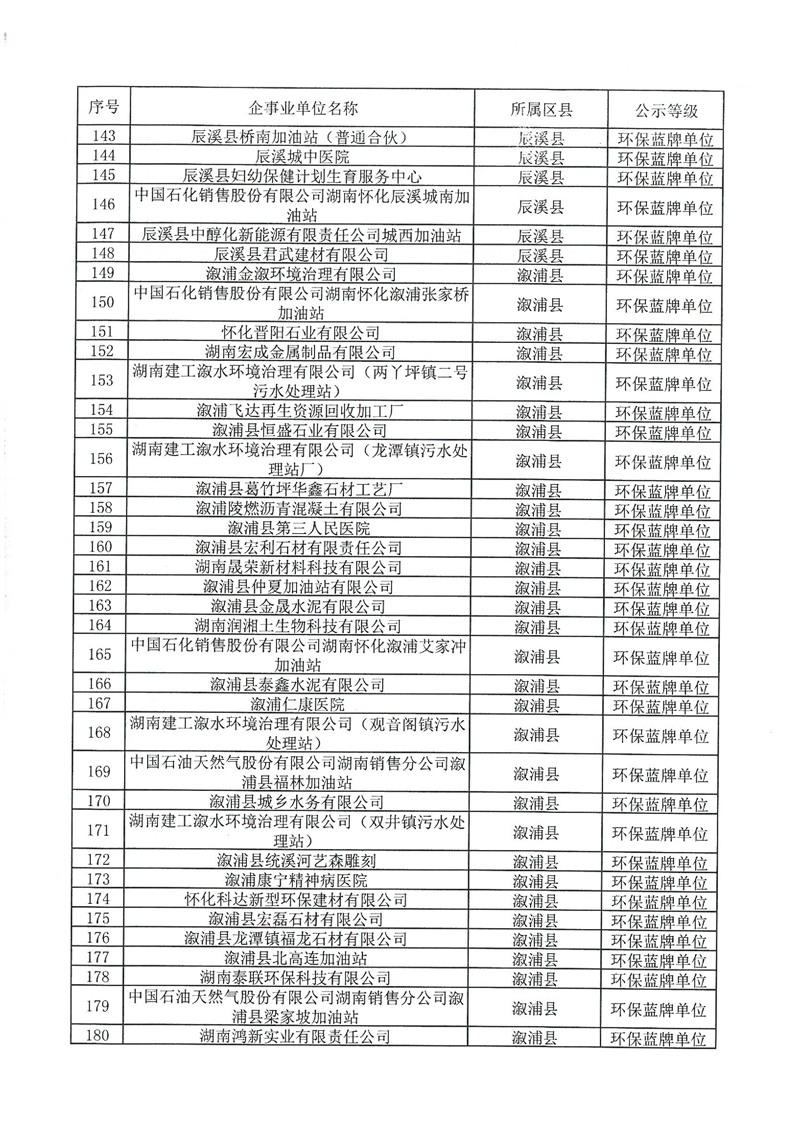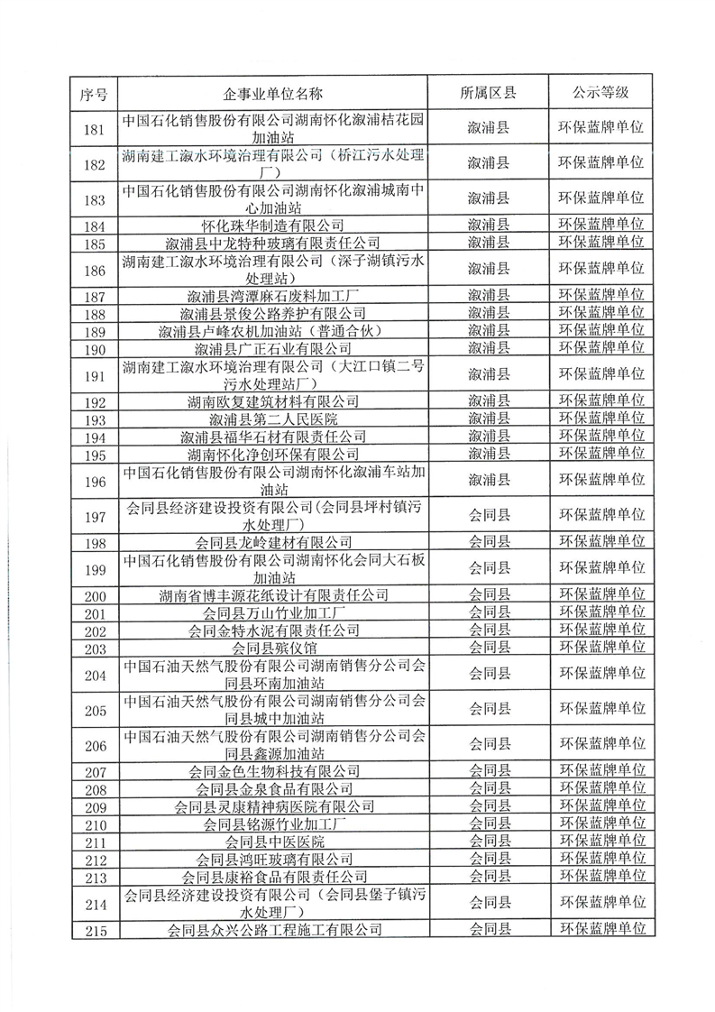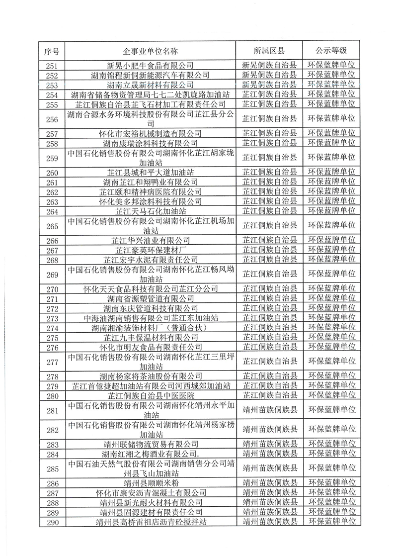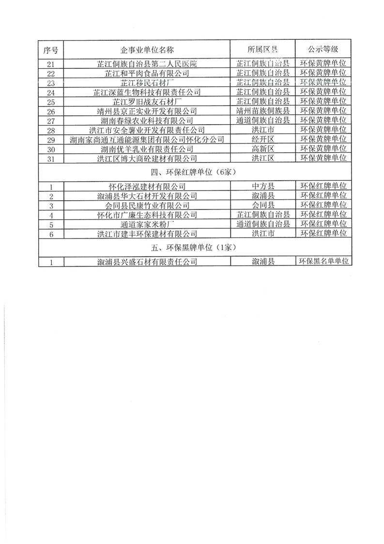 怀化市2024年度市级参评企事业单位环保信用评价拟定结果公示