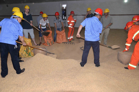 6月22日上午,通道侗族自治县2018年粮食质量安全事故应急处置预案演练在县粮食储备库举行。本次演练以粮食储备2号仓库县级储备粮正“发热高温、并严重霉变”现象为模拟背景,县粮安指挥中心调查组报告事故情况;处置组组织人员现场调查核实;行业管理组织启动应急预案,对事故进行现场控制,发布应急处置指令;处置组快速组织应急人员火速赶往现场,对“发热高温、霉变”稻谷进行现场处置;现场对演练进行点评等环节。演练以点带面,进一步锻炼了粮食应急工作队伍,检验了粮食行业应对粮食质量安全事故的反应能力和实际操作能力以及各相关职能部门的综合协调能力,为粮食应急工作积累了经验,达到了预期的效果。