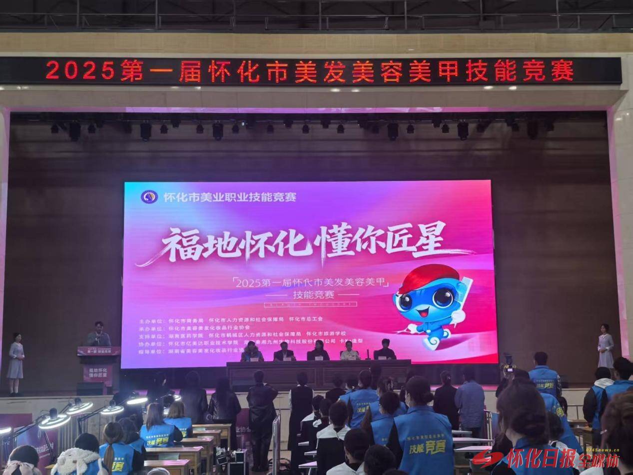 11月30日,由市商务局、市人社局和市总工会联合主办,市美容美发化妆品行业协会承办的“2025第一届怀化市美发美容美甲技能竞赛”在湖南医药学院体育馆拉开帷幕。