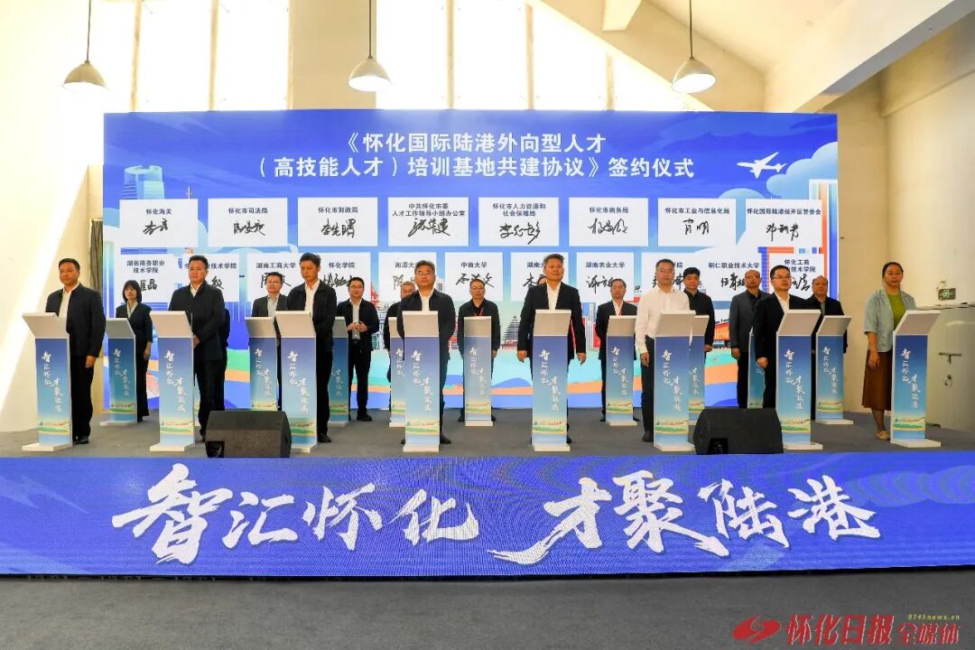 4月18日,在“智汇怀化 才聚陆港”2026年怀化市促进高校毕业生就业创业暨“留怀来怀”高校行活动中,怀化国际陆港外向型人才(高技能人才)培训基地启动建设并签署共建协议。基地紧扣怀化国际陆港“港产城旅”融合发展及市委、市政府AI陆港建设要求,赋能全市“5+10”现代化产业体系升级,精准摸排陆港开放型经济企业人才需求,补齐外向型、人工智能融合型高技能人才短板。