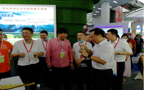 19日上午,省委宣传部副部长、省文化和旅游厅党组书记禹新荣对怀化展区进行巡馆,详细了解了怀化旅游产业发展情况,品尝了文旅厅定点扶贫下孵化的项目“雪峰片片桔”,当场竖起了大拇指。