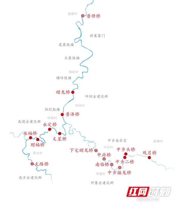 为使散落山水间的文物与文化遗产“连成一线”,目前,湖南以廊桥为主题,依托坪坦河流域廊桥文物及赋存环境,探索构建具有鲜明地域特征的坪坦河风雨桥文物主题游径,记录廊桥文物及赋存环境现状,挖掘价值,消除重大险情,遏制文物病害,维护廊桥文物及其赋存环境的历史真实性、风貌完整性、文化延续性。
