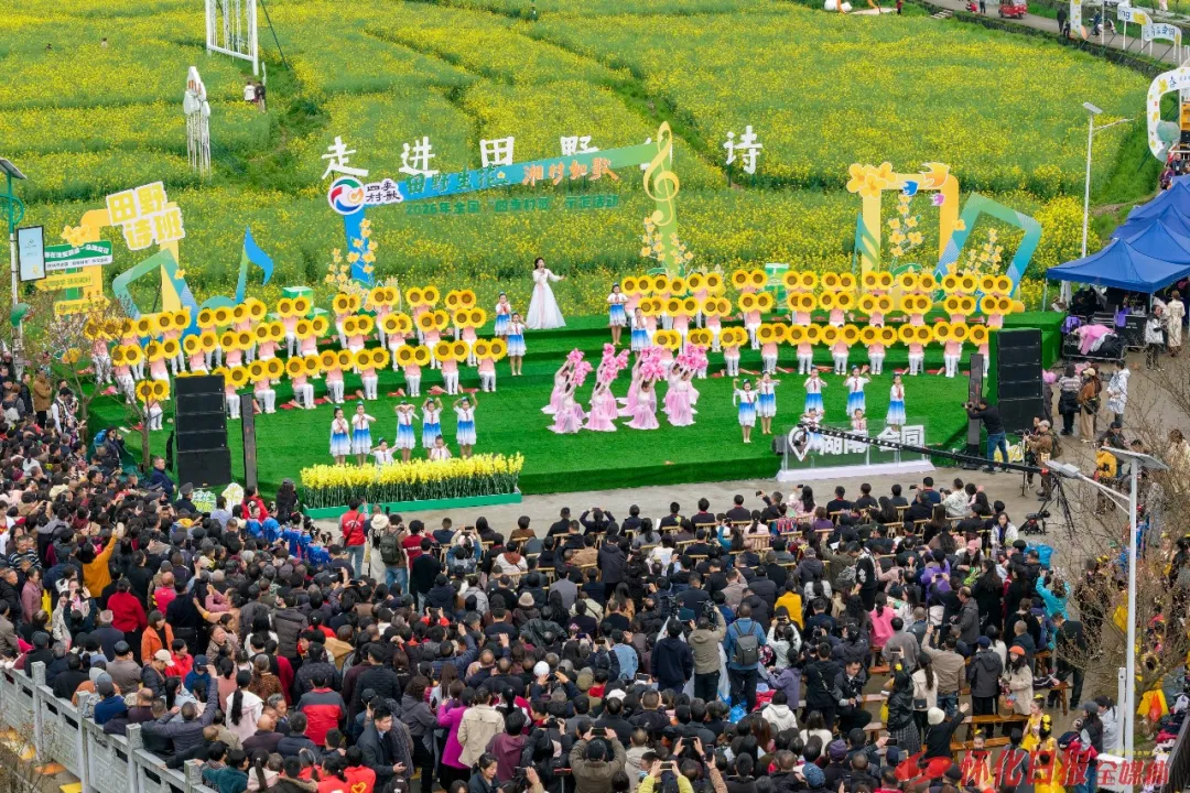 金浪翻香歌满野,侗乡踏舞醉春风。3月28日下午,“田野生花·湘村如歌”2026年全国“四季村歌”首场示范活动在怀化市会同县堡子镇稻香诗田景区精彩上演。