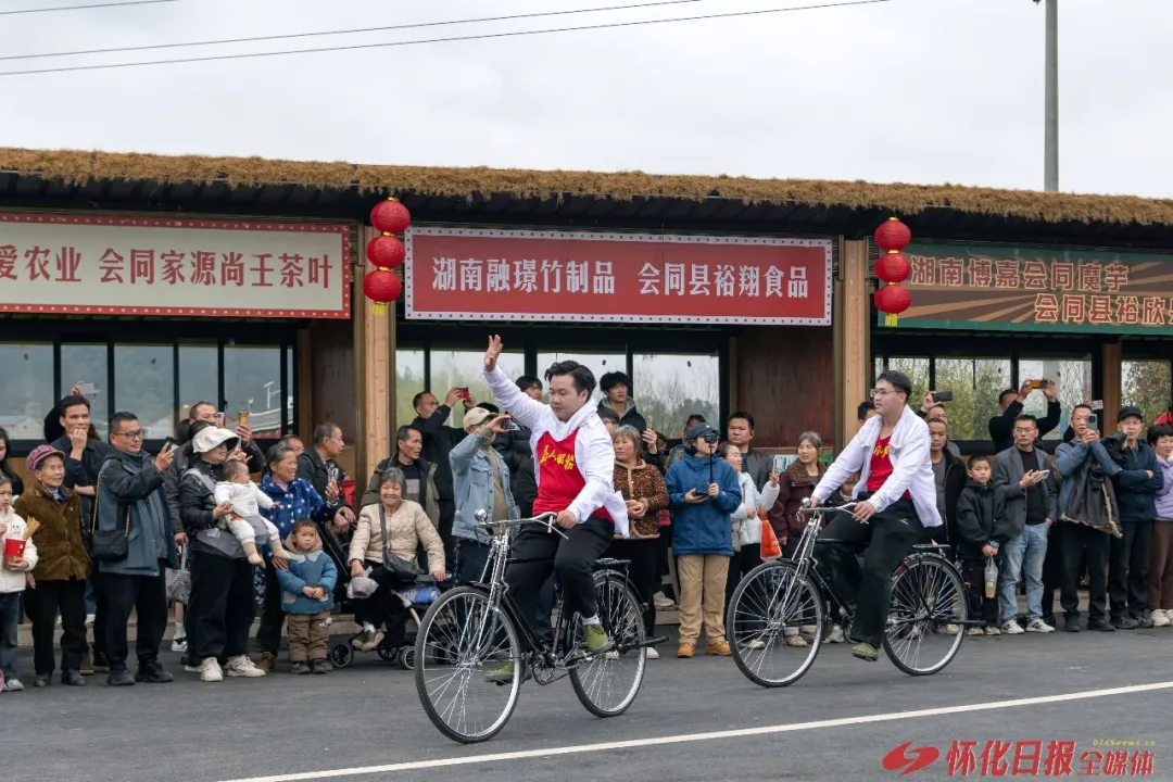 台下,白发老人、孩童游客围坐花海,跟着旋律轻轻哼唱,不少人举起手机记录下这乡野间的动人时刻。背景中,“会同魔芋”“尚王茶叶”等本地特产展位错落排布,在文化展演的同时,为乡村产业搭建起展示窗口。