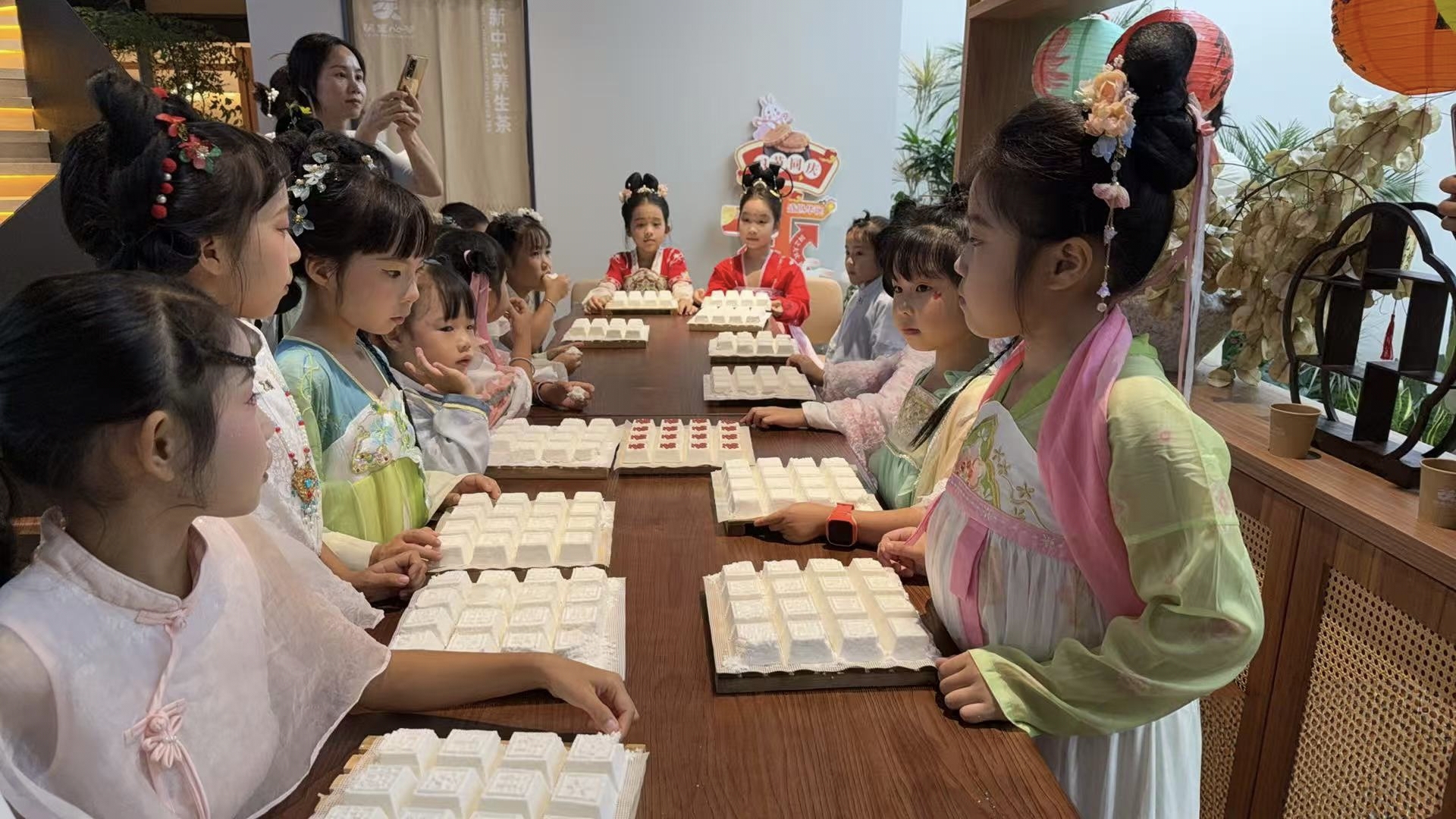 10月6日是农历八月十五中秋节,靖州苗族侗族自治县“茯至心苓”新中式养生茶饮总店举办汉服雅集活动,十余组亲子家庭身着汉服参与,在手工制作茯苓糕点与品尝茯苓茶的互动体验中,共赴兼具文化韵味与地方特色的中秋盛宴,传承传统文化的同时打响靖州茯苓养生茶饮品牌。
