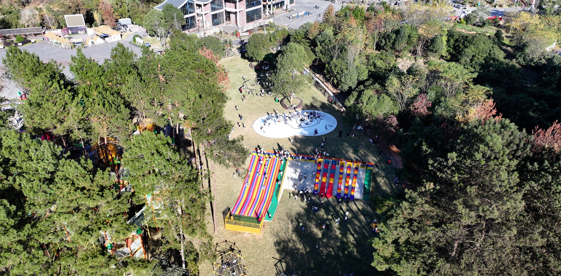 该乐园以飞山松灵部落为主题,由靖州飞山文化旅游有限公司自主运营。设置游玩项目50余个,采用南北分区设计:北区约5亩,配置飞山迷踪、地形钻洞、虫虫总动员等项目;南区约7亩,设有松林魔网、丛林溜索等体验内容。