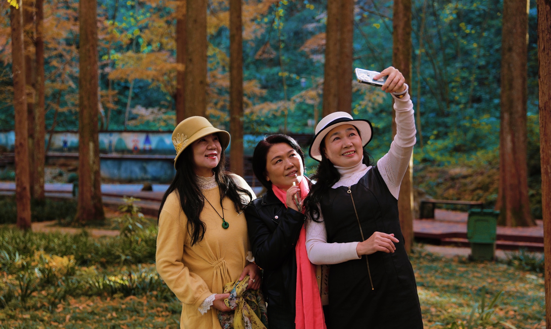 水杉平均树高30米、胸径46厘米,笔直挺拔直指天际。随着季节更替,叶片由绿转黄再染绯红,落叶铺满的林间小道踩上去沙沙悦耳。漫步其中,游客或举相机定格美景,或与亲友闲谈,孩子们林间嬉戏,音乐爱好者即兴吹奏,原生态景致让人流连。