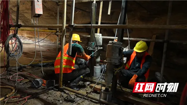 走进位于潭湾镇三甲塘村的二期施工现场,机械运转、工人忙碌,处处呈现出井然有序的施工景象。施工人员针对洞内积水、淤积严重的难题,精准施策、全力破解,稳步推进工程建设。“我们正在进行洞内疏浚工程,施工面处于山体最低处,汇水多,给清淤带来不小难度。”中华藏书洞二期项目施工负责人雷亚蒂介绍,项目采用人工水钻方式开展溪底疏通处理,预计8天内攻克积水淤积难题,力争6月份前实现整个溶洞贯通。