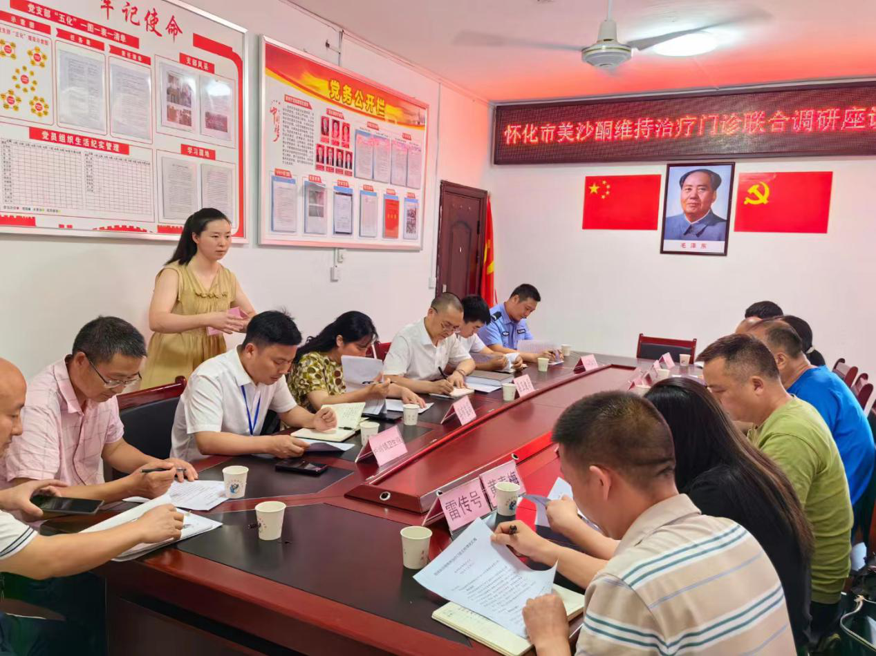 为进一步加强和规范药物维持治疗工作,2024年7月22日-26日,市卫生健康委会同市公安局、市市场监管局对洪江区、新晃县、辰溪县等9家药物维持治疗门诊进行了联合调研,由市卫生健康委党委副书记、副主任、市疾控局局长谭瑞明带队,深入各门诊进行现场查看和访谈。