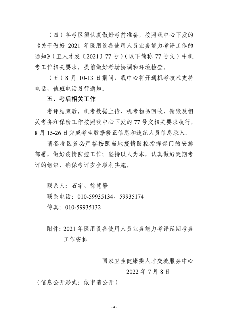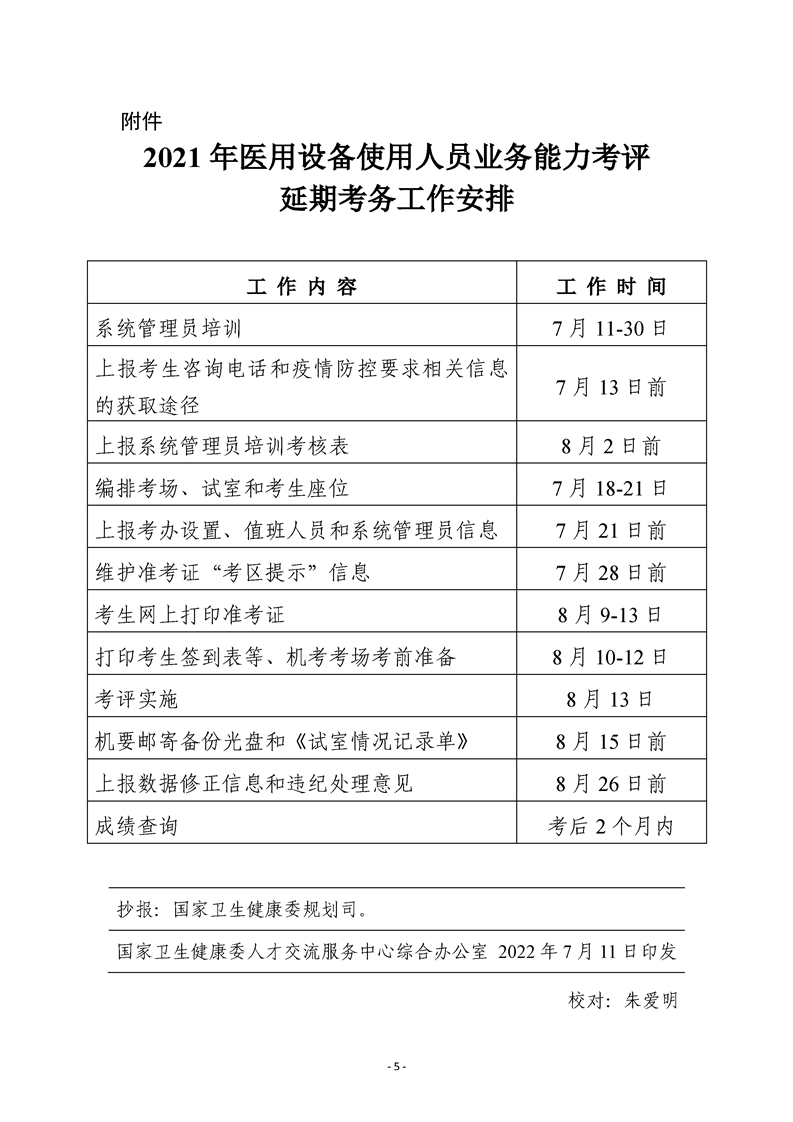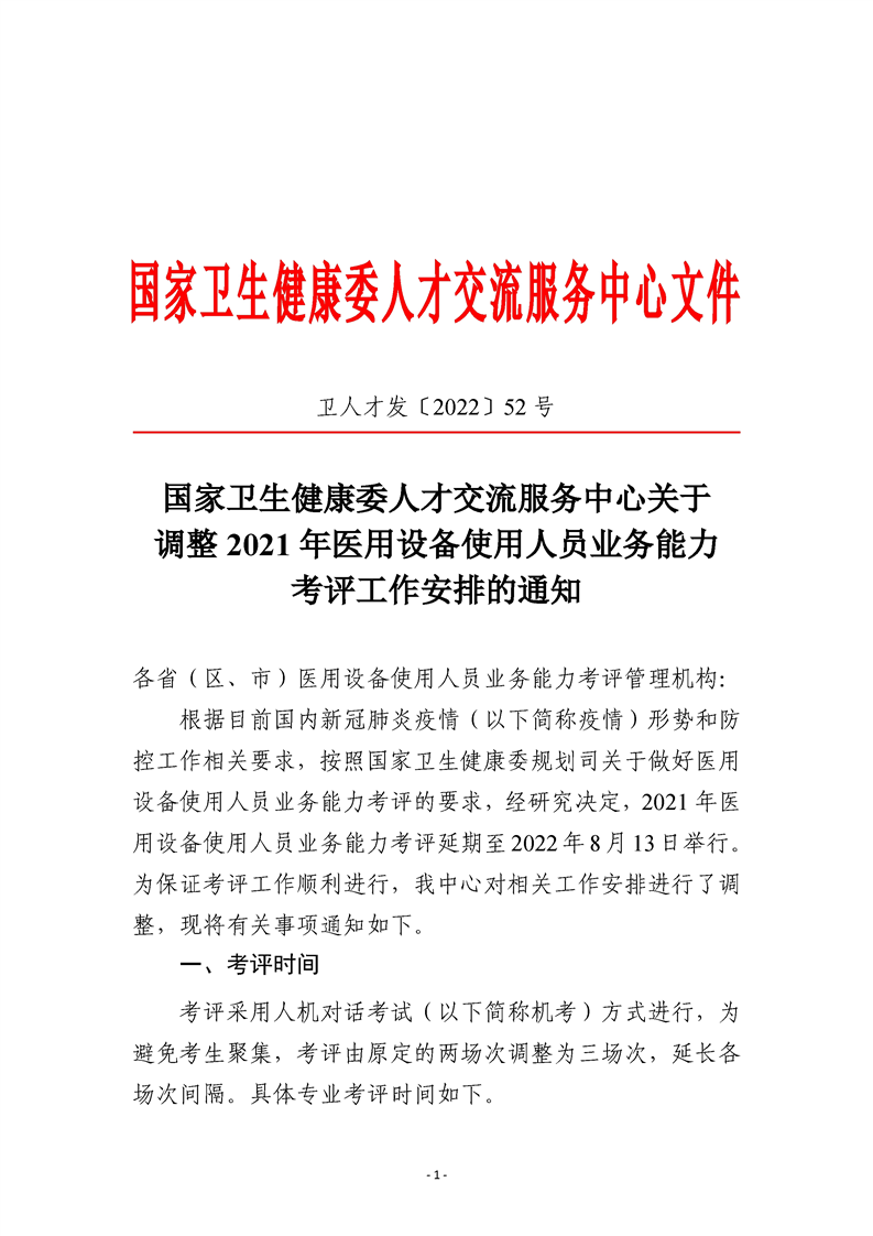 关于调整2021年医用设备使用人员业务能力考评工作安排的通知