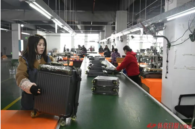 怀化日报全媒体讯(全媒体记者 张卓 通讯员 彭雪杨)2月22日,怀化国际陆港经开区途佳箱包生产车间内,流水线高速运转,一件件箱包快速成型、打包,车间一派繁忙有序的生产景象。这批2.6万个箱包订单来自国内某电商平台,将通过网络销往全国各地,成为园区企业节后复工复产的生动缩影。