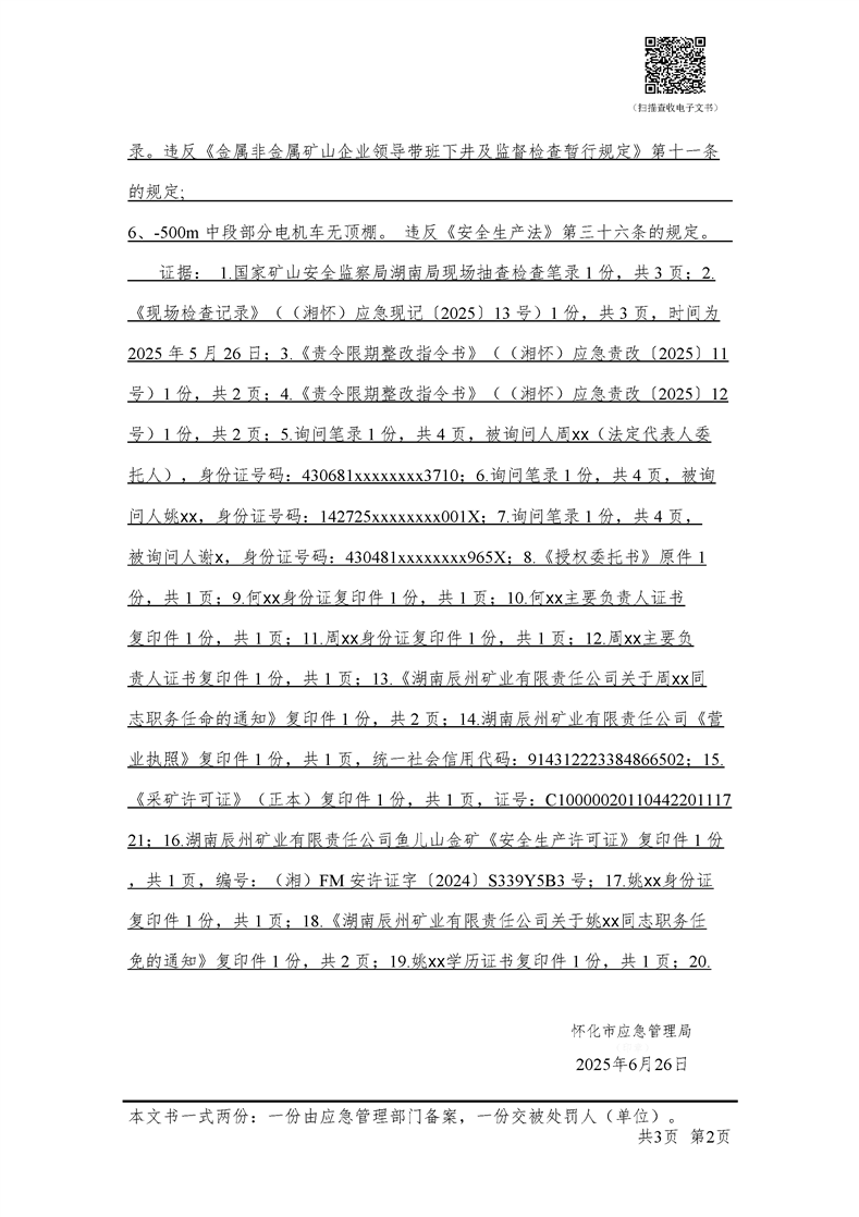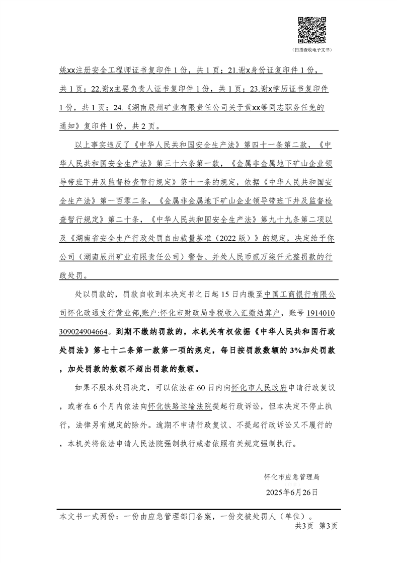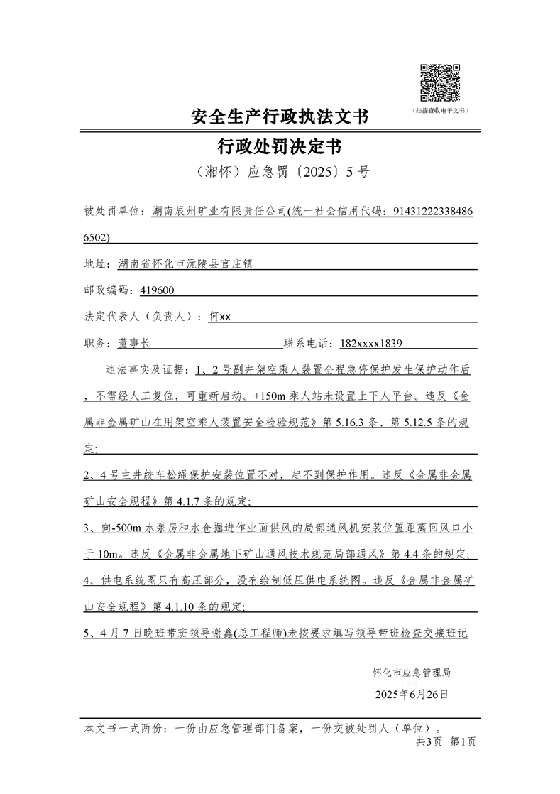 行政处罚决定书(湘怀)应急罚〔2025〕5 号